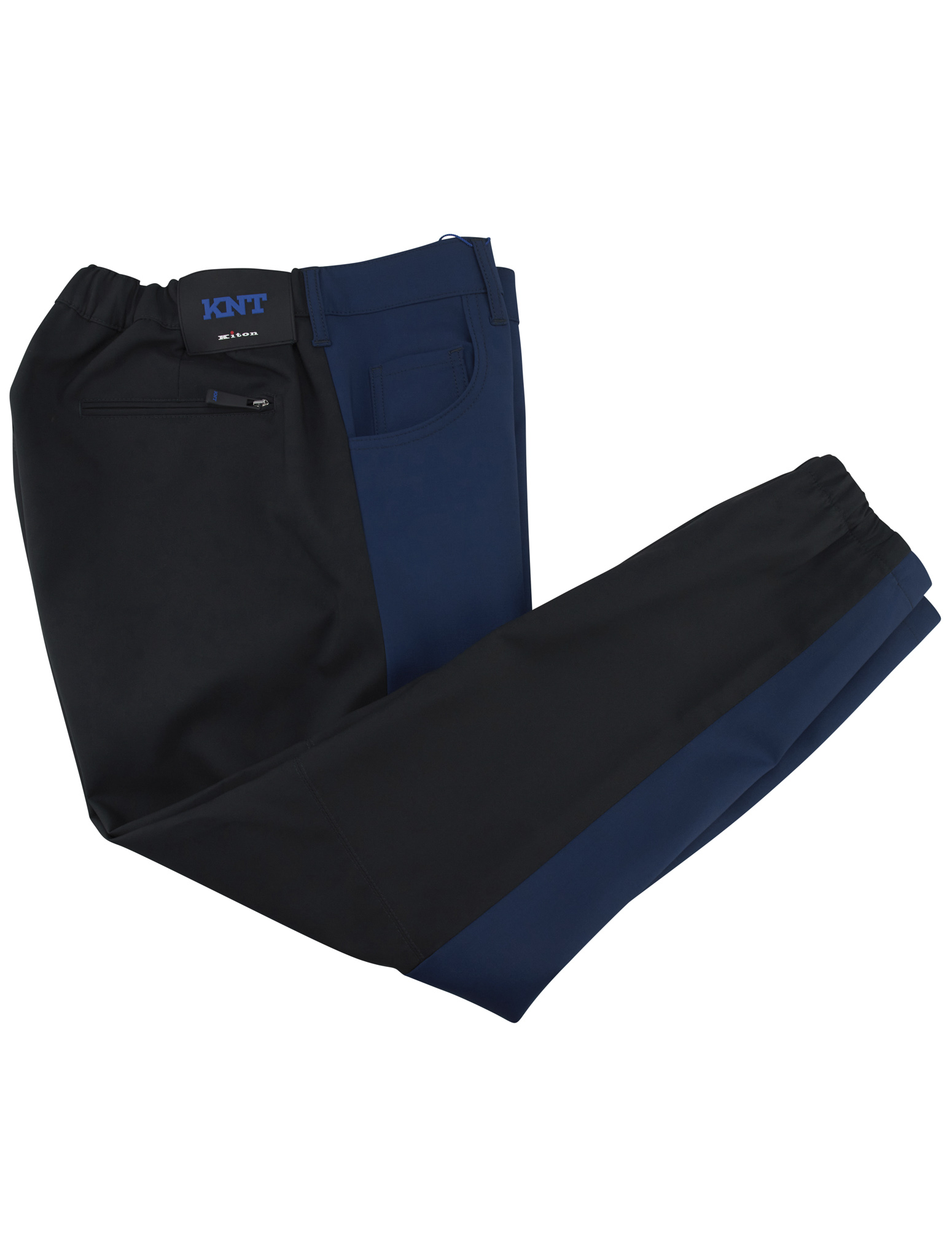Эти сине-черные брюки Kiton KNT изготовлены из инновационной смеси полиэстера, шерсти, полиуретана и эластана, сочетающей в себе роскошь и превосходные характеристики. Тонкая шерсть придает мягкость и воздухопроницаемость, а технические волокна повышают долговечность, структуру и гибкость. Глубокий сине-черный тон и солидный дизайн создают элегантную современную эстетику, идеально подходящую для универсального стиля. Являясь частью современной линии KNT, они имеют обтекаемый силуэт и спортивный, но изысканный характер. Эти брюки, выполненные с тщательным вниманием к деталям, воплощают приверженность Kiton инновациям, комфорту и итальянскому мастерству, предлагая изысканный и динамичный вариант для современного гардероба.