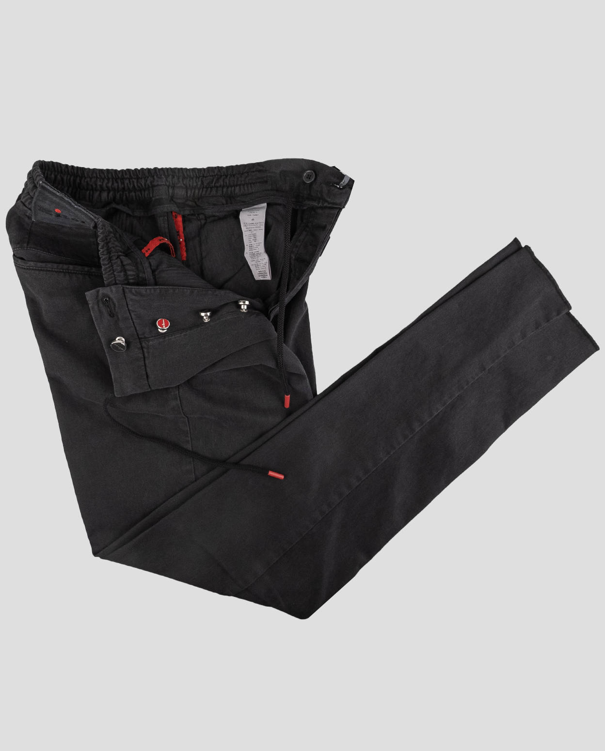 Черные брюки Kiton из смеси лиоцелла и хлопка идеально подходят для зимней одежды. Эти роскошные брюки с застежкой на пуговицы и шнуровкой обеспечивают надежную и стильную посадку. Ткань сочетает в себе мягкость и прочность, что делает ее идеальной как для повседневных, так и для официальных мероприятий. Богатая текстура и одинарная складка придают изделию изысканность, позволяя вам оставаться элегантной и теплой в холодные месяцы. Универсальные и изысканные брюки Kiton легко дополняют различные топы и обувь, демонстрируя приверженность бренда исключительному качеству и неподвластному времени дизайну. Наслаждайтесь непревзойденным комфортом и стилем благодаря безупречному мастерству Kiton.