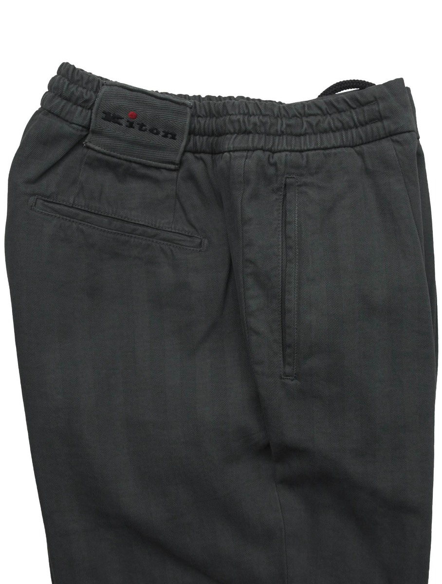 Серые брюки Kiton из смеси хлопка и кашемира дополнены классической ширинкой на пуговицах. Эти брюки сочетают в себе комфорт и стиль, что делает их универсальным дополнением вашего гардероба. Тщательно изготовленные, они излучают вневременное очарование и подходят для различных случаев. Поднимите свой стиль с изысканными серыми брюками Kiton из хлопка и кашемира.
