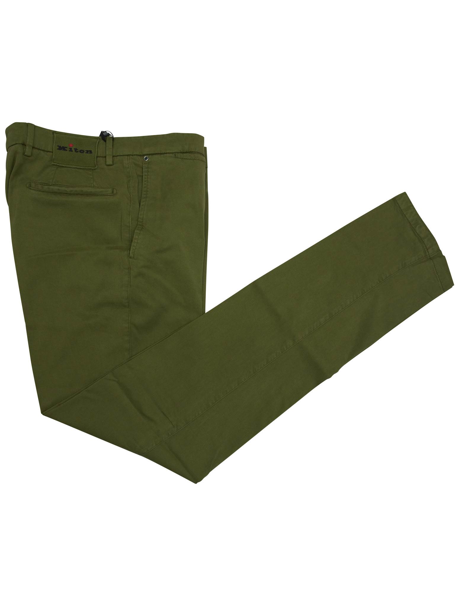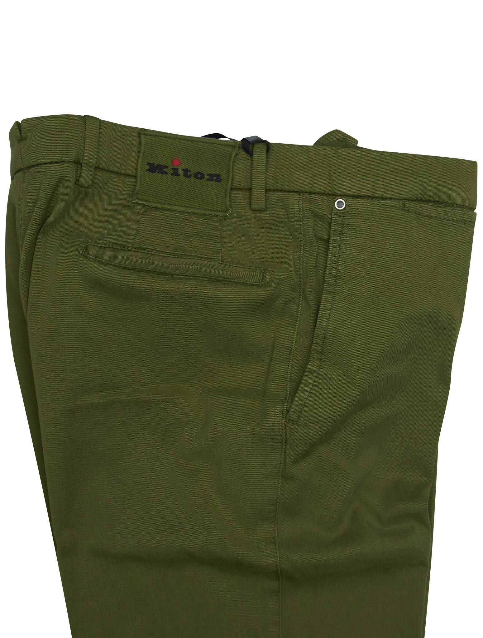 Брюки Kiton, изготовленные из лиоцелла и эластана (EA), создают ощущение роскоши и слегка эластичны. Их насыщенный зеленый оттенок придает нотку природной элегантности, а современная ширинка на молнии обеспечивает идеальную посадку. Эти брюки являются свидетельством изысканного итальянского мастерства Kiton.
