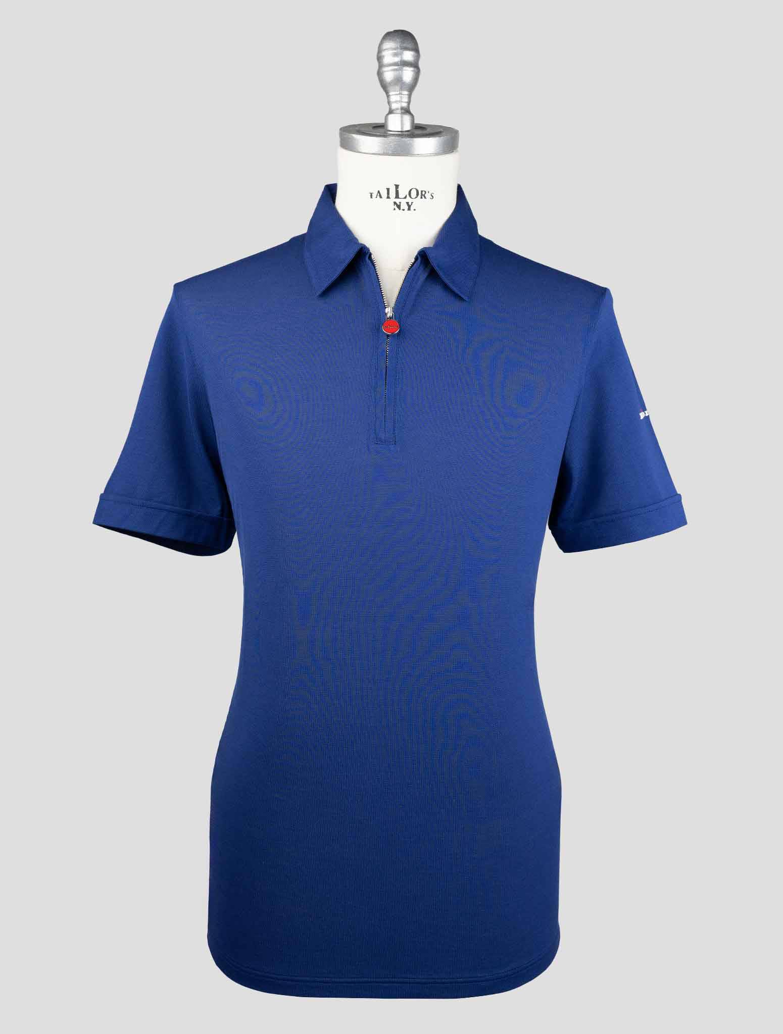 Синяя хлопковая футболка-поло Kiton с молнией на половину длины