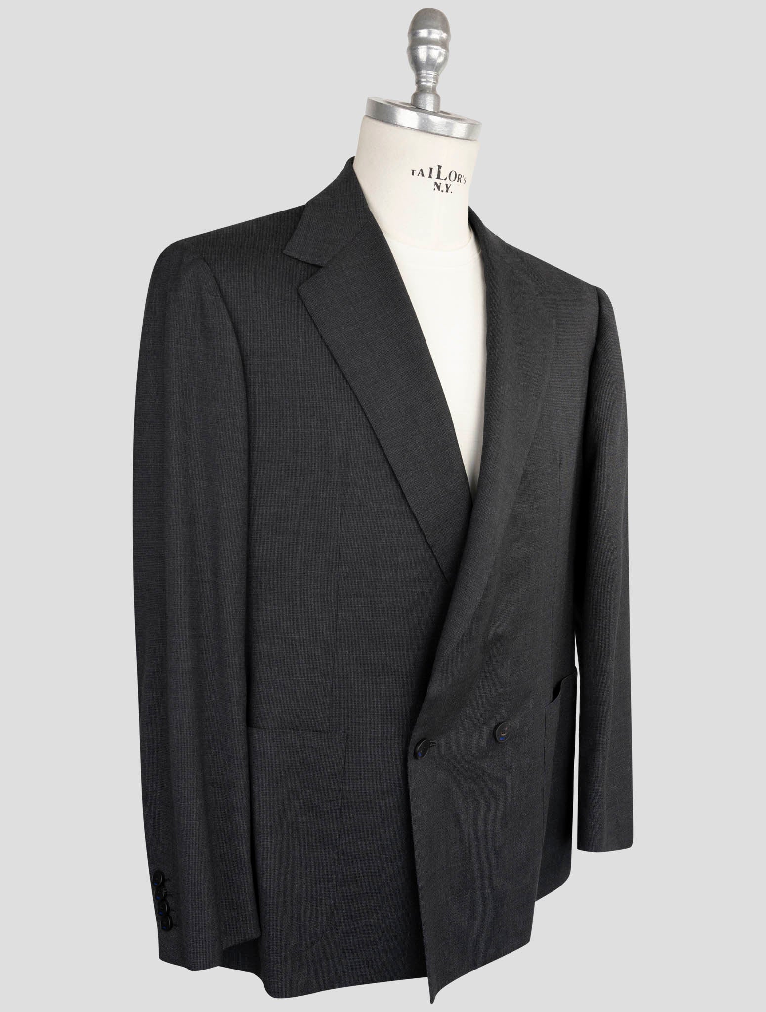 Kiton KNT Серый двубортный костюм из натуральной шерсти - по индивидуальному заказу в Италии