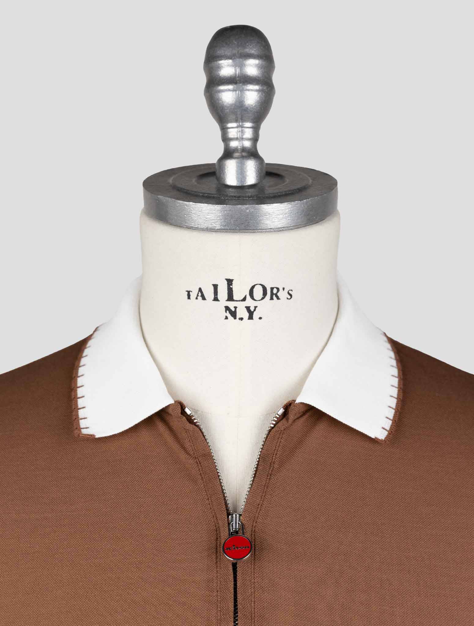 Поло Kiton Polo из 100% хлопка с полумолнией на половину молнии, коричневого цвета с текстурой и белым воротником — это утонченное сочетание элегантности и повседневной утонченности. Эта футболка-поло, изготовленная из 100% хлопка премиум-класса, обеспечивает превосходную мягкость, воздухопроницаемость и комфорт в любое время года. Текстурированная ткань насыщенного коричневого цвета добавляет глубины, а контрастный белый воротник придает образу острый и изысканный вид. Застежка на половину молнии предлагает современный и универсальный вариант стиля, что делает ее идеальной для многослойного ношения или самостоятельного ношения. Эта футболка-поло, изготовленная мастерами в Италии, воплощает фирменное мастерство Kiton и неподвластный времени стиль, что делает ее незаменимой деталью гардероба взыскательного джентльмена.