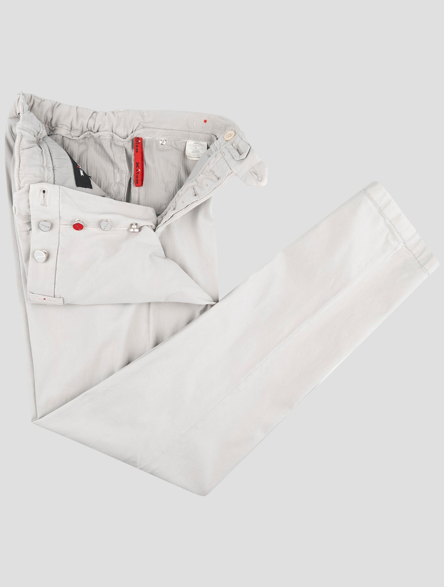 Kiton Gray Lyocell Cotton Stretch Pants These Kiton gray pants combine Italian craftsmanship with premium fabric technology. Made from a luxurious blend of lyocell, cotton, linen, and elastane, these designer trousers deliver exceptional comfort and performance. Premium Fabric Composition The lyocell cotton blend offers lightweight breathability with natural stretch properties. The moisture-wicking fabric ensures all-day comfort while maintaining shape retention. The addition of linen provides t