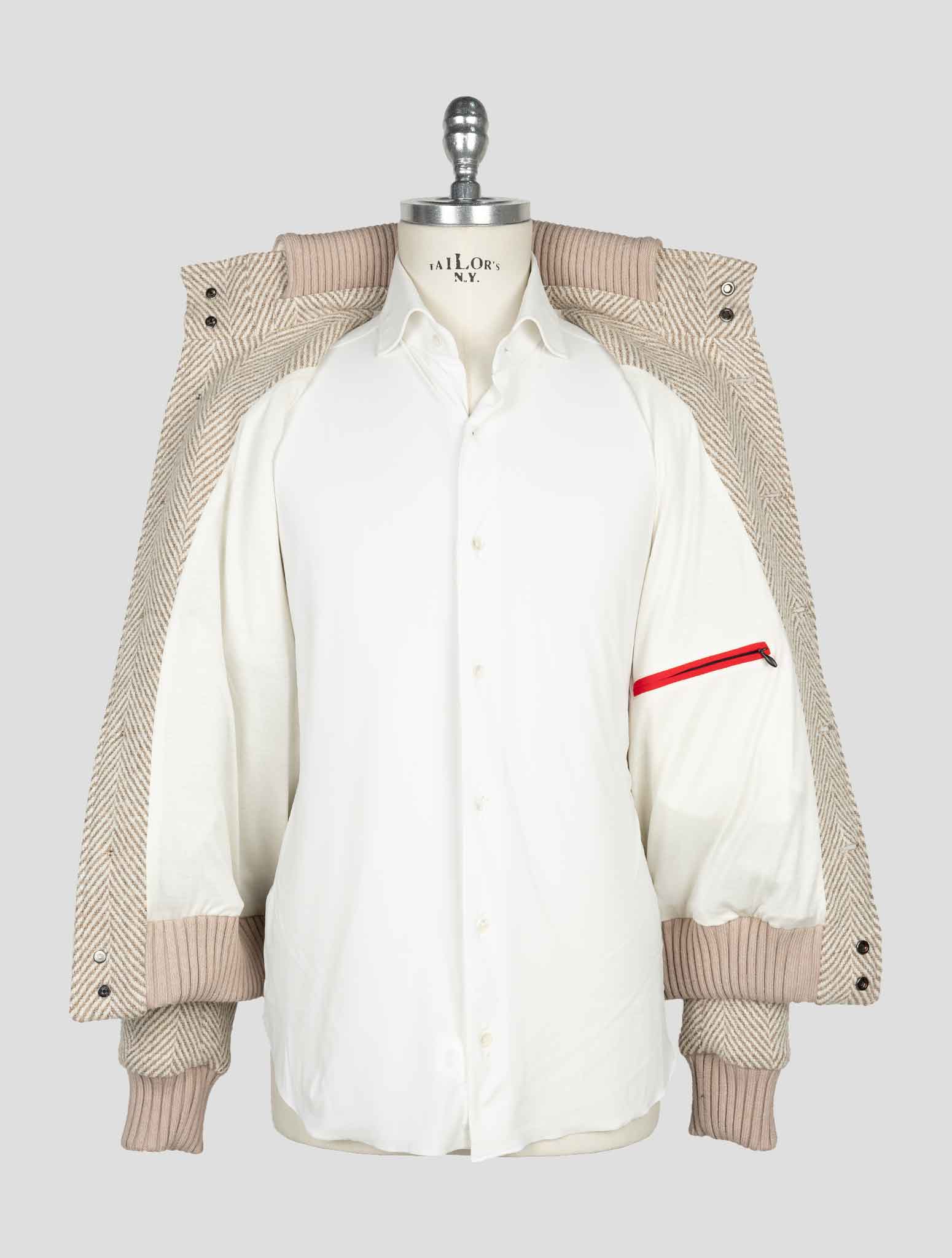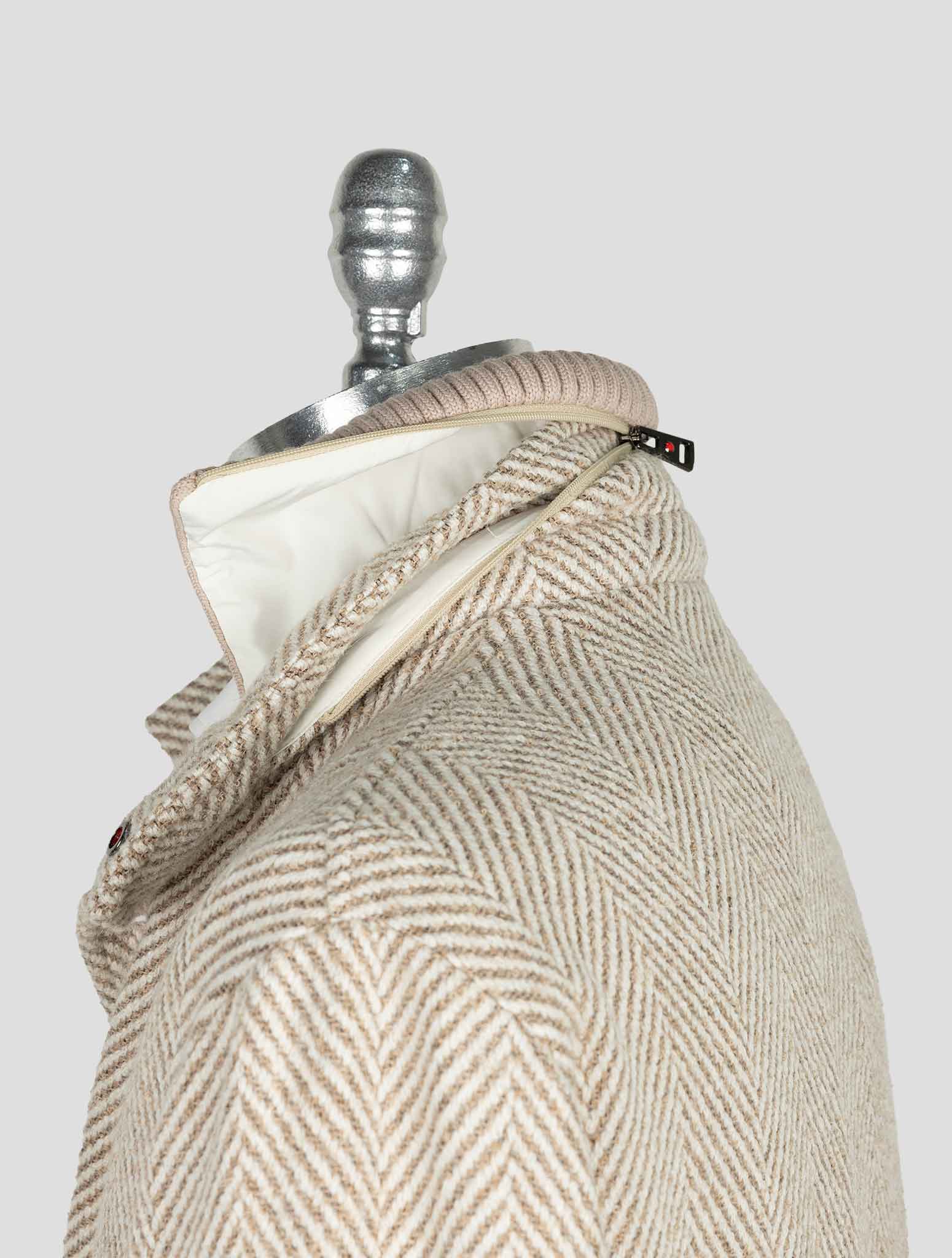 Это пальто Kired изысканного бежевого цвета с изысканной фактурной отделкой выполнено из высококачественной смеси альпаки, шерсти и полиамида. Роскошная ткань обеспечивает исключительное тепло, мягкость и долговечность, сохраняя при этом ощущение легкости и комфорта. Текстурированная поверхность добавляет глубины и характера, подчеркивая элегантность и современность. Разработанный с учетом индивидуального силуэта, он создает изысканный и универсальный вид, подходящий как для повседневного, так и для официального случая. Застежка на пуговицы придает модели классический вид, дополняя ее вневременной дизайн. Это пальто, созданное мастерски и с вниманием к деталям, отражает приверженность Kired качеству и итальянскому мастерству.