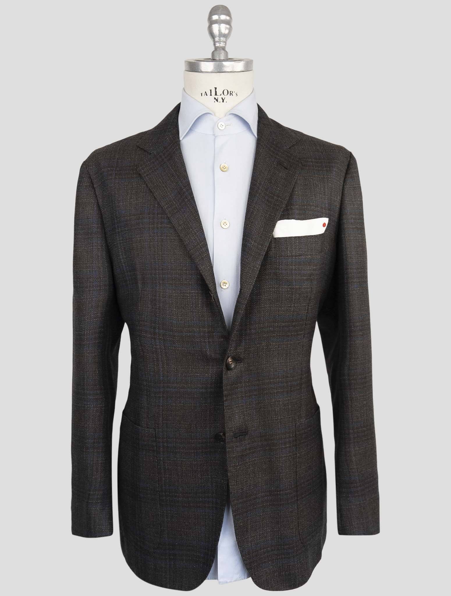 Коричневый кашемировый шелковый пиджак Kiton - итальянская ручная работа на 3 пуговицах