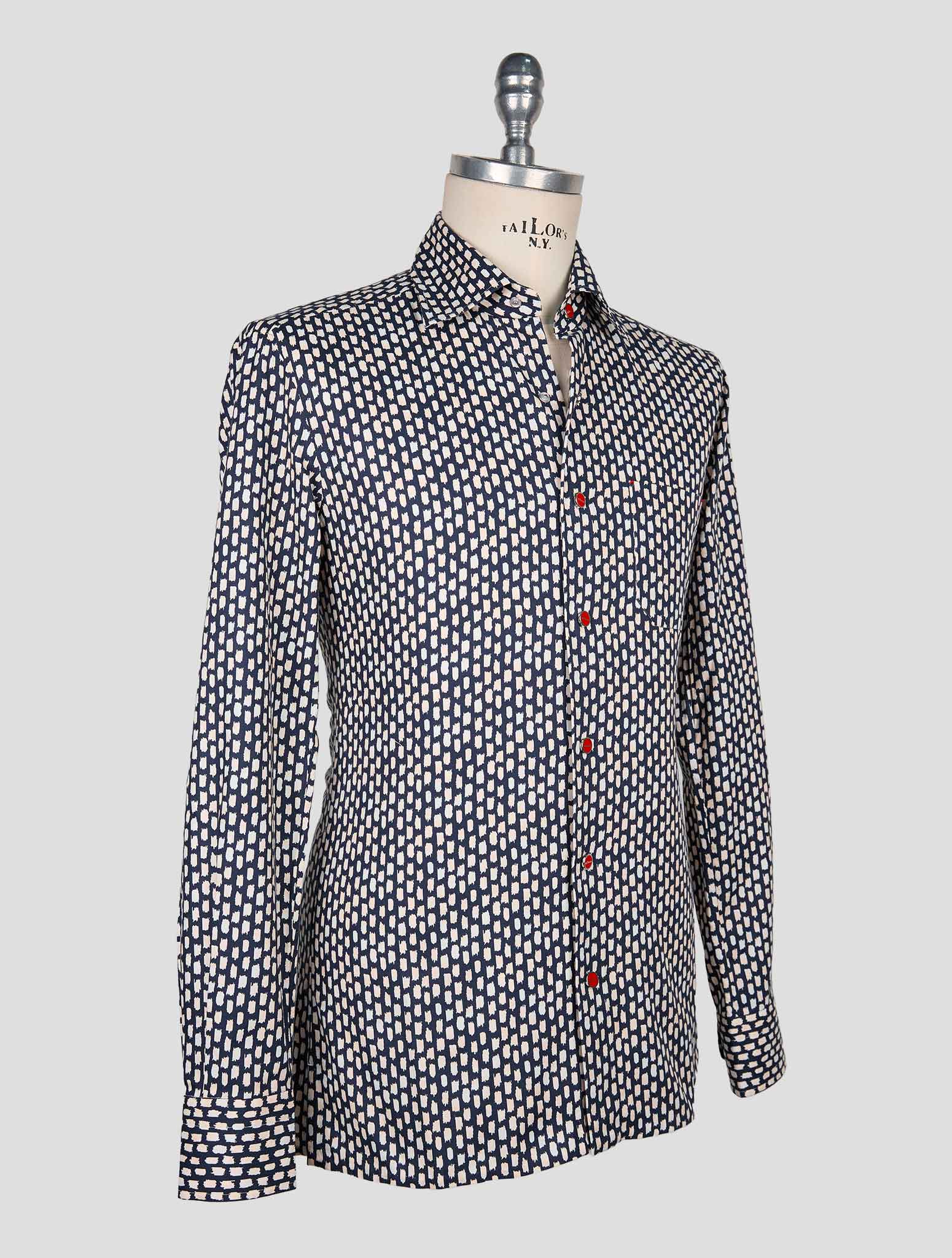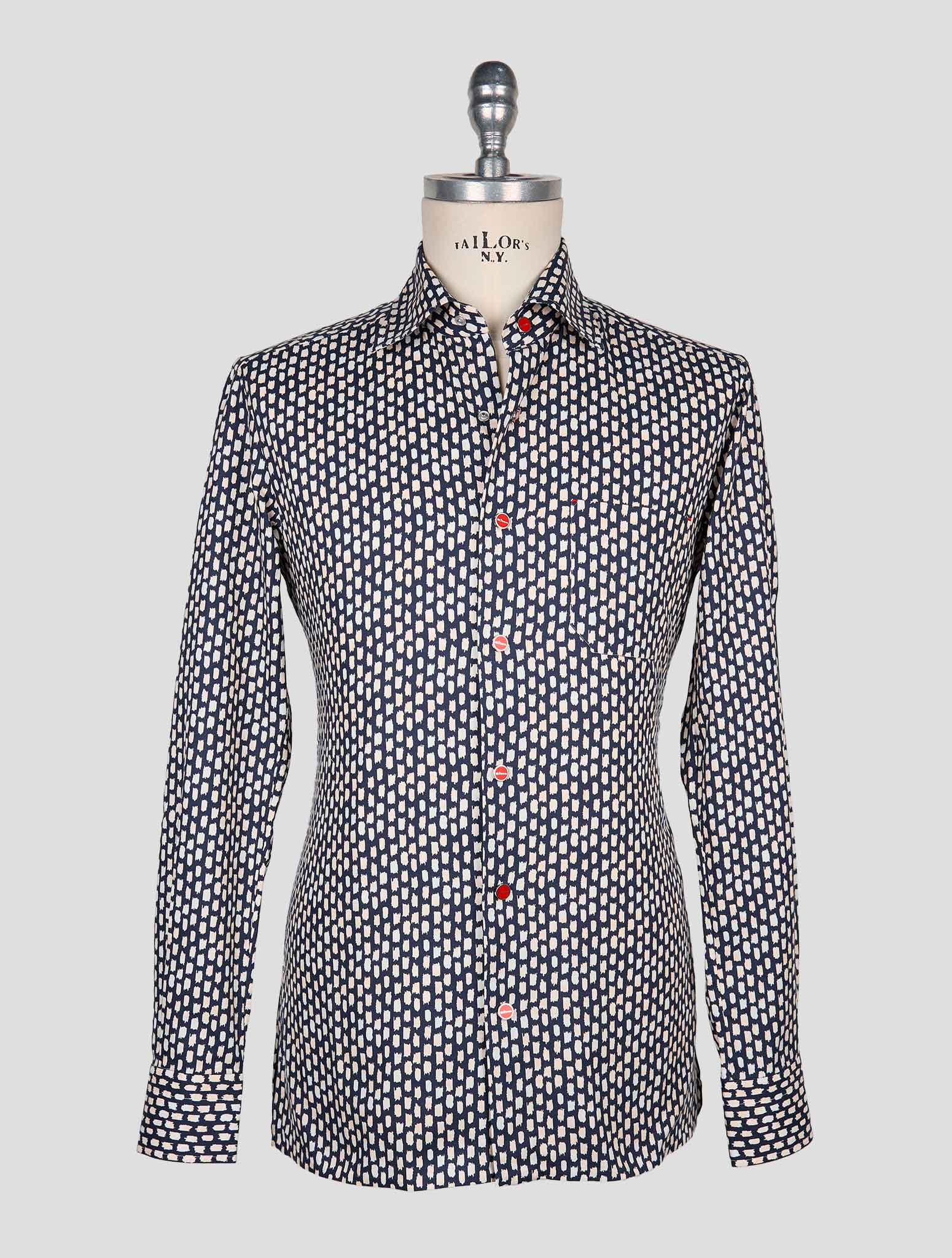 Свежая и изысканная сине-белая фантазийная рубашка Kiton изготовлена из 100% хлопка премиум-класса, обеспечивающего исключительную мягкость и воздухопроницаемость. Элегантный фантазийный узор сочетает в себе синие и белые тона, создавая изысканный, но современный образ, который идеально подходит как для повседневного, так и для элегантного образа. Созданный мастерами для обеспечения удобной и приятной посадки, он отражает превосходство итальянского мастерства. Застежка-кнопка обеспечивает удобство ношения, сохраняя при этом чистый, современный эстетический вид.