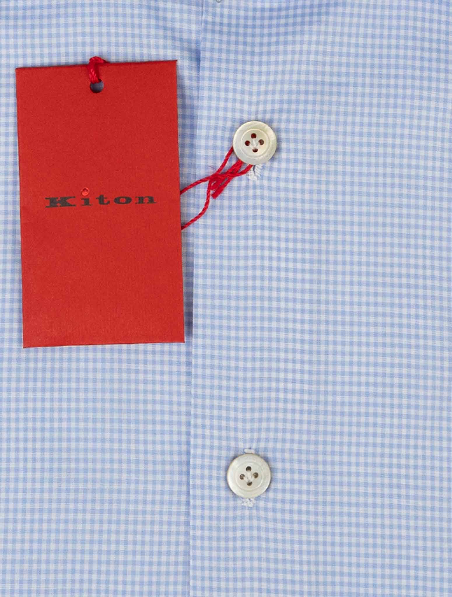 Рубашка Kiton из 100% хлопка Голубой Белый Геометрический — это изысканное сочетание роскоши и современной элегантности. Изготовленная из 100% хлопка премиум-класса, она обеспечивает исключительную мягкость, воздухопроницаемость и комфорт для повседневного ношения. Светло-синий и белый геометрический узор придает современный вид этому вневременному дизайну, что делает его универсальным выбором как для профессиональной, так и для повседневной обстановки. Эта рубашка со стандартными манжетами обеспечивает индивидуальную, но свободную посадку, подчеркивая изысканность и легкость движений.