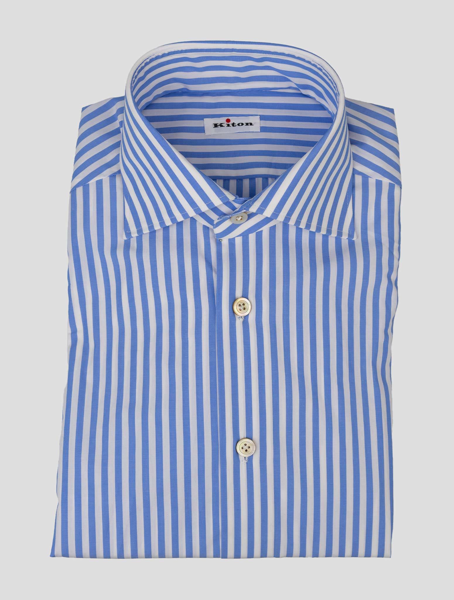 Рубашка Kiton в голубую и белую полоску, изготовленная из 100% хлопка премиум-класса, представляет собой идеальное сочетание элегантности и комфорта. Эта рубашка с тонким полосатым узором нежного голубого и белого цвета станет универсальным выбором как для официальных, так и для повседневных мероприятий. Легкая хлопковая ткань обеспечивает воздухопроницаемость и мягкость на ощупь, что делает ее идеальной для повседневного ношения. Созданная с высокой точностью, она обеспечивает облегающую посадку, подчеркивающую силуэт, сохраняя при этом свободу движений. Будь то в паре с