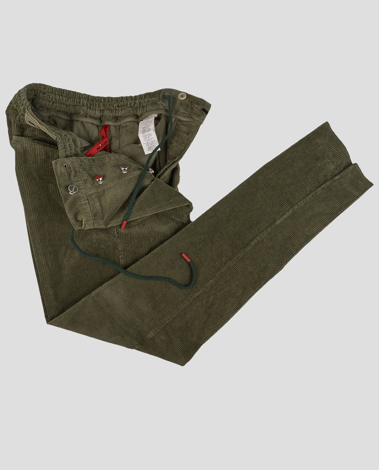 Kiton Зеленые бархатные брюки из хлопка, кашемира и кашемира