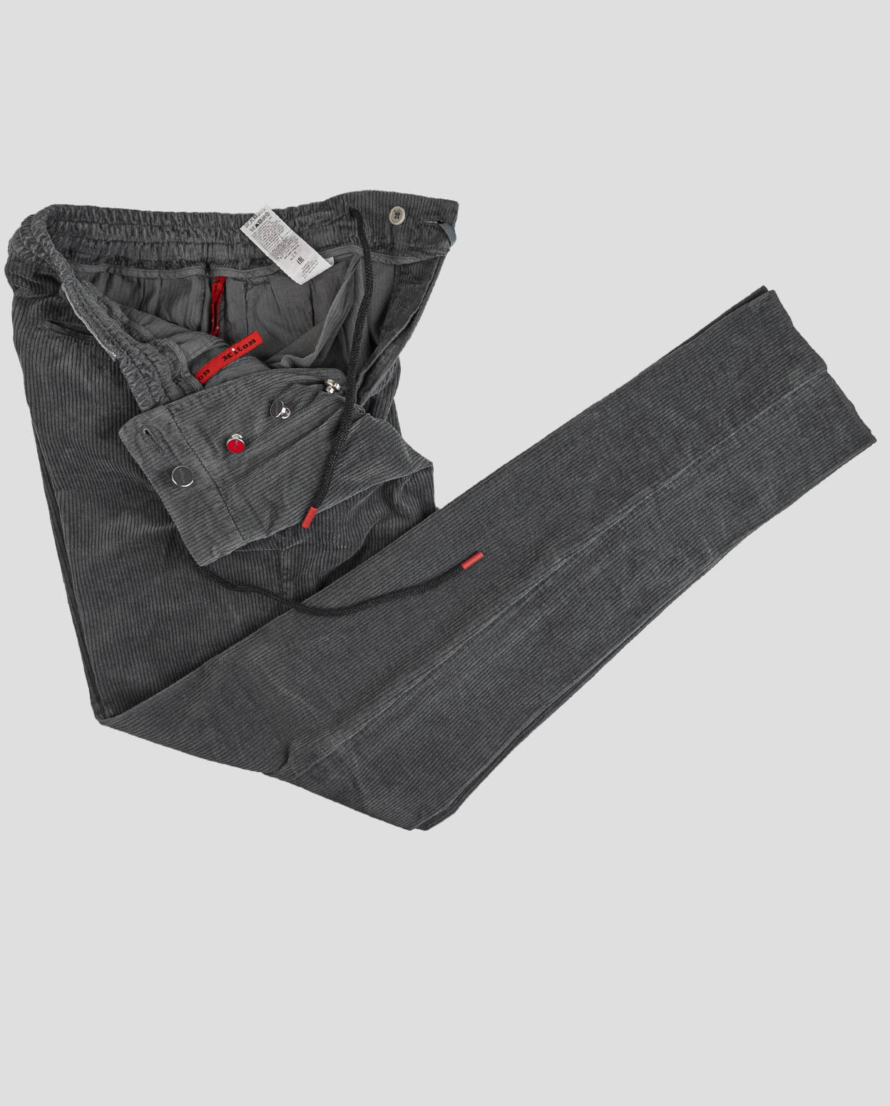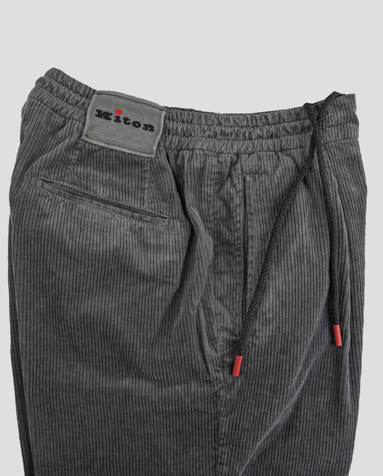 Эти роскошные бархатные брюки Kiton изготовлены из роскошной смеси хлопка и кашемира и обеспечивают непревзойденное тепло и мягкость для зимнего сезона. Брюки имеют изысканную ребристую текстуру глубокого темно-серого оттенка, подчеркивающую их элегантную привлекательность. Они имеют надежную застежку на пуговицы и уникальную шнуровку, которая придает им современный вид. Сочетание богатого бархата и изысканного пошива обеспечивает приятную посадку и плавный силуэт. Эти брюки, идеально подходящие для стильных зимних встреч, олицетворяют комфорт и шик, что делает их отличным дополнением к любому изысканному гардеробу.
