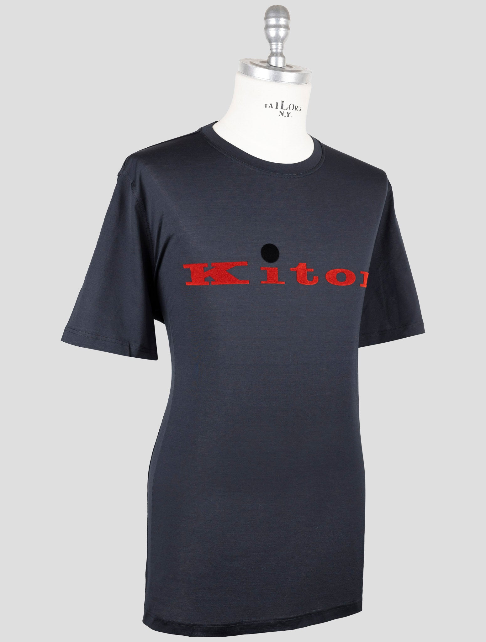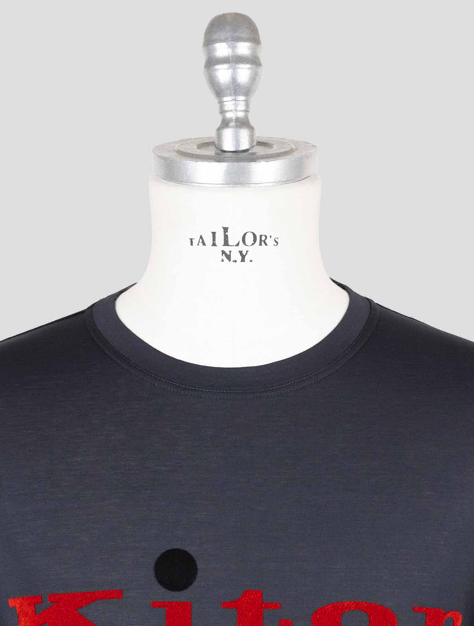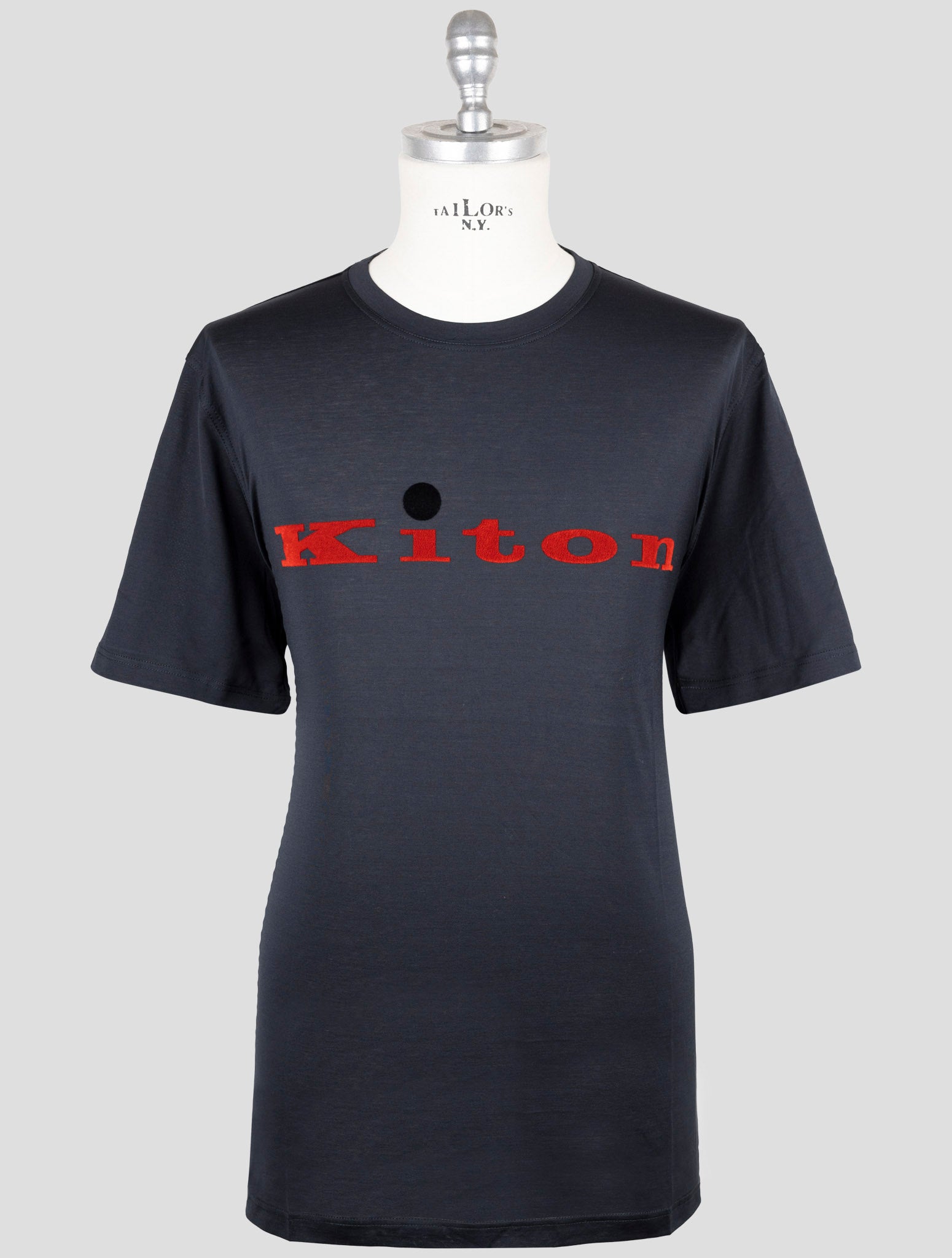Хлопковая футболка Kiton Premium — синяя мужская роскошная футболка Made in Italy