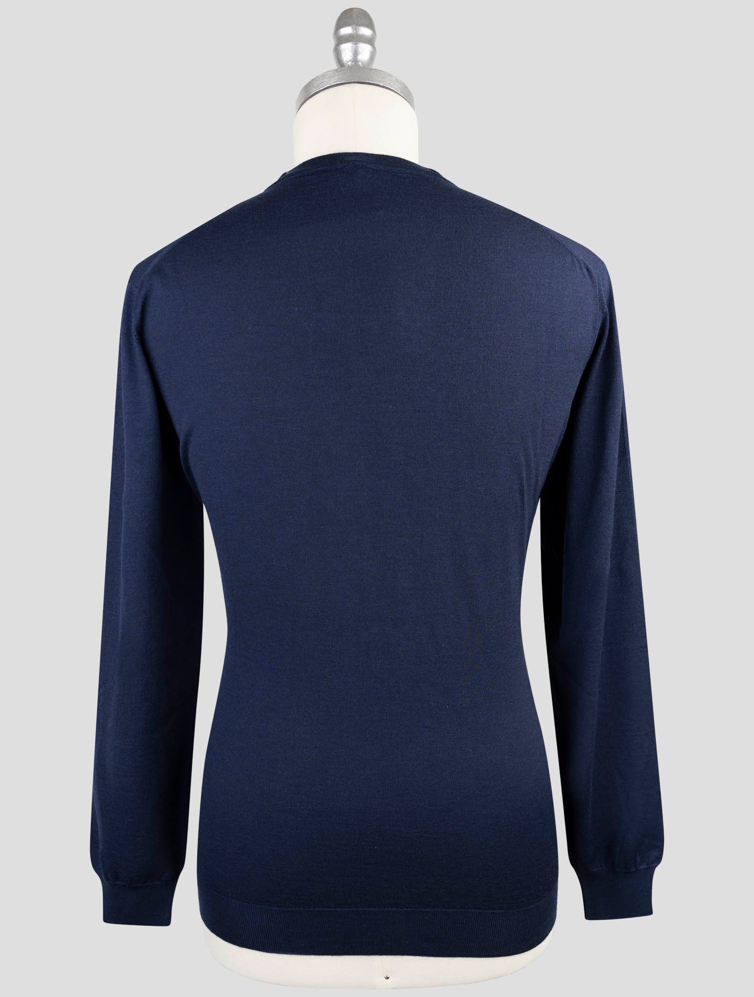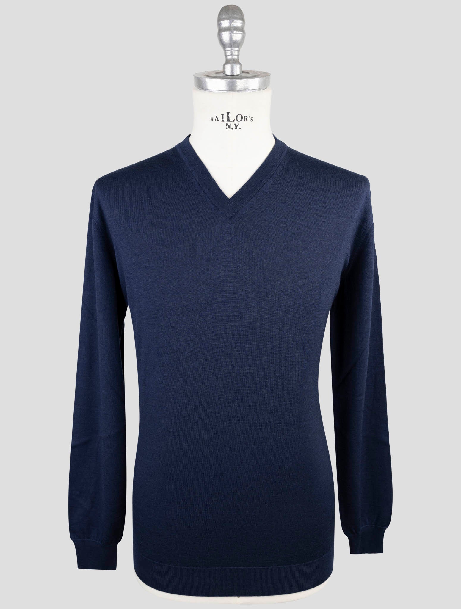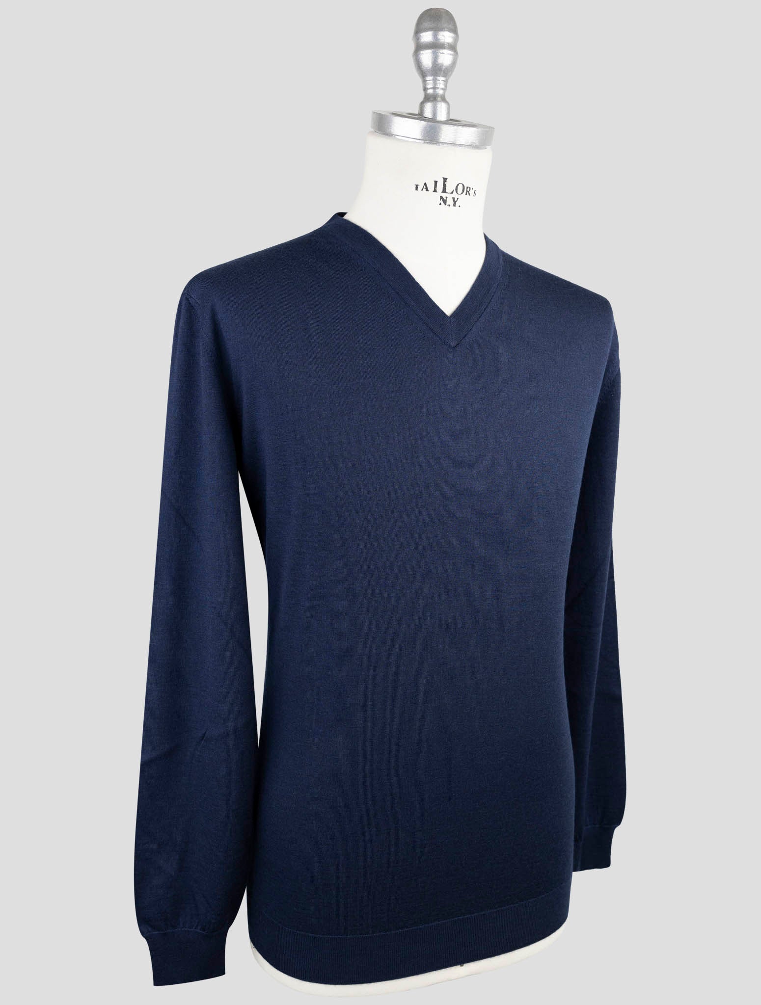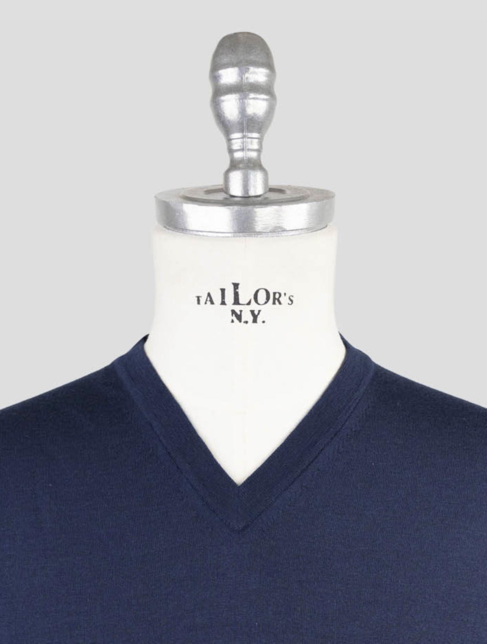Kiton Кашемировый шелковый свитер с v-образным вырезом синий - итальянская ручная работа