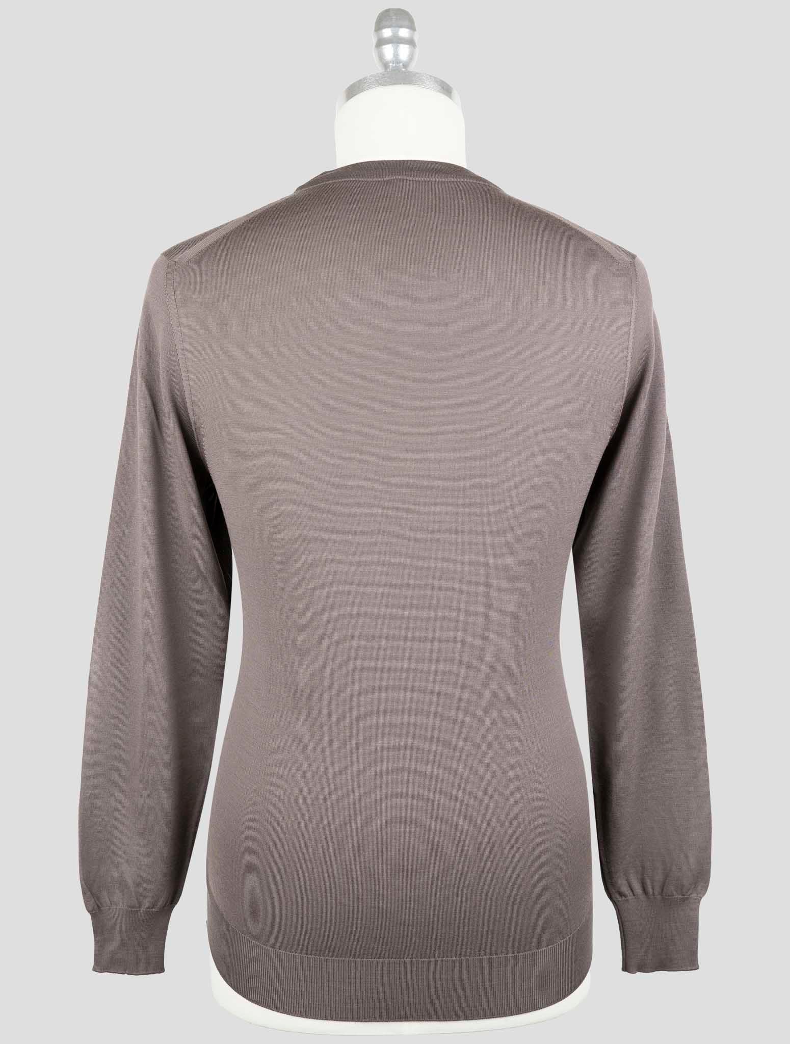 Коричневый шерстяной свитер Kiton с круглым вырезом – итальянское мастерство Свитер Kiton с круглым вырезом коричневого цвета из однотонной шерсти – изысканный предмет гардероба для взыскательного джентльмена. Изготовленная в Италии из 100% шерсти премиум-класса, она обеспечивает исключительное тепло, мягкость и воздухопроницаемость. Насыщенный коричневый оттенок добавляет нотку землистой изысканности и идеально подходит для осеннего и зимнего гардероба. Этот свитер с классическим круглым вырезом и идеальной посадкой легко трансформируется из профессионального образа в повседневный. Будь многослойным под