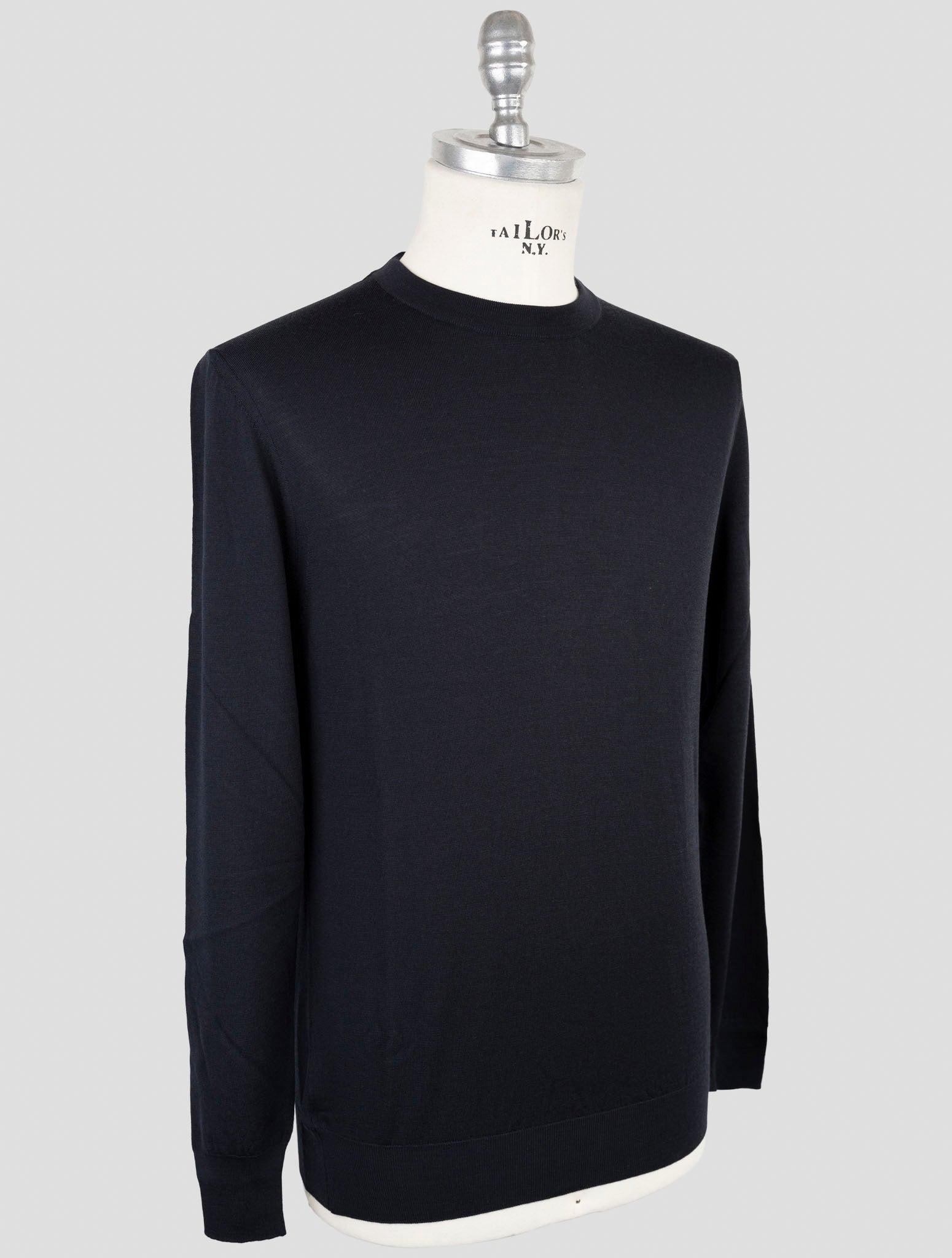 Kiton Темно-синий свитер с круглым вырезом из 100% шерсти - Неаполь ручной работы