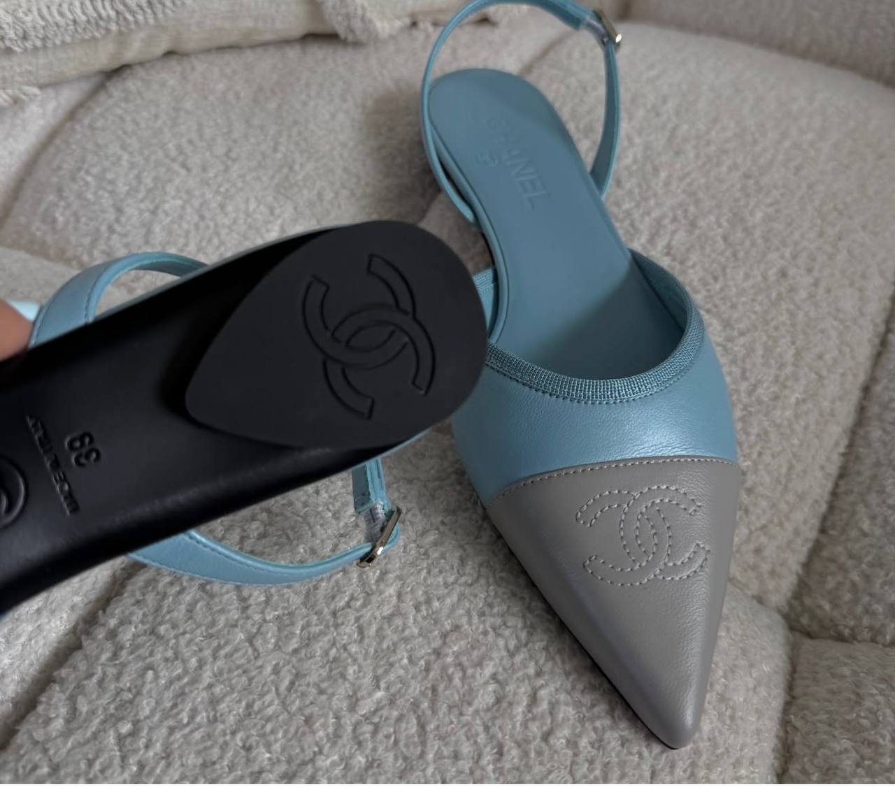 Невероятно красивые и нежные слингбэки от Chanel Сочетание серого и голубого подойдет под любой весенний образ
