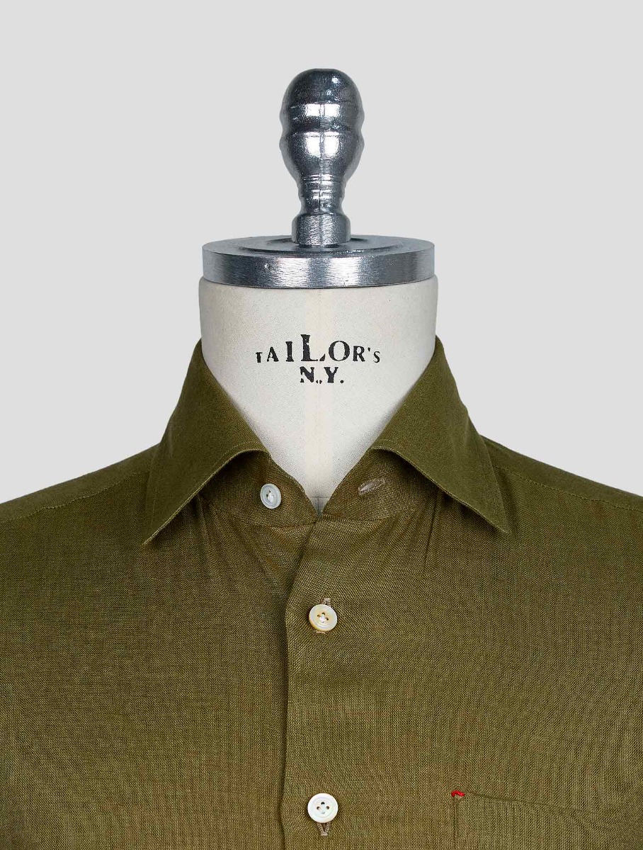 Kiton Зеленая льняная рубашка