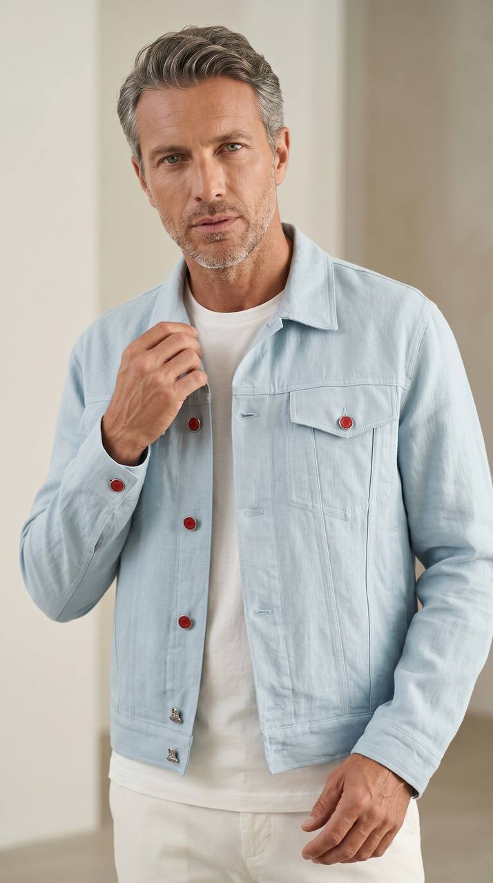 Откройте для себя голубое джинсовое хлопковое пальто EA Kiton с кожаными замшевыми вставками — идеальное сочетание повседневного стиля и роскошного мастерства. Это мужское пальто, изготовленное из светло-голубой джинсовой хлопчатобумажной ткани EA премиум-класса, обеспечивает комфорт, долговечность и современную посадку. Классические застежки на пуговицы и изысканные кожаные замшевые вставки превращают традиционное джинсовое пальто в модный образ высокого класса. Идеально подходит для тех, кто ищет дизайнерские голубые джинсовые пальто, верхнюю одежду с кожаной отделкой или стильную одежду.