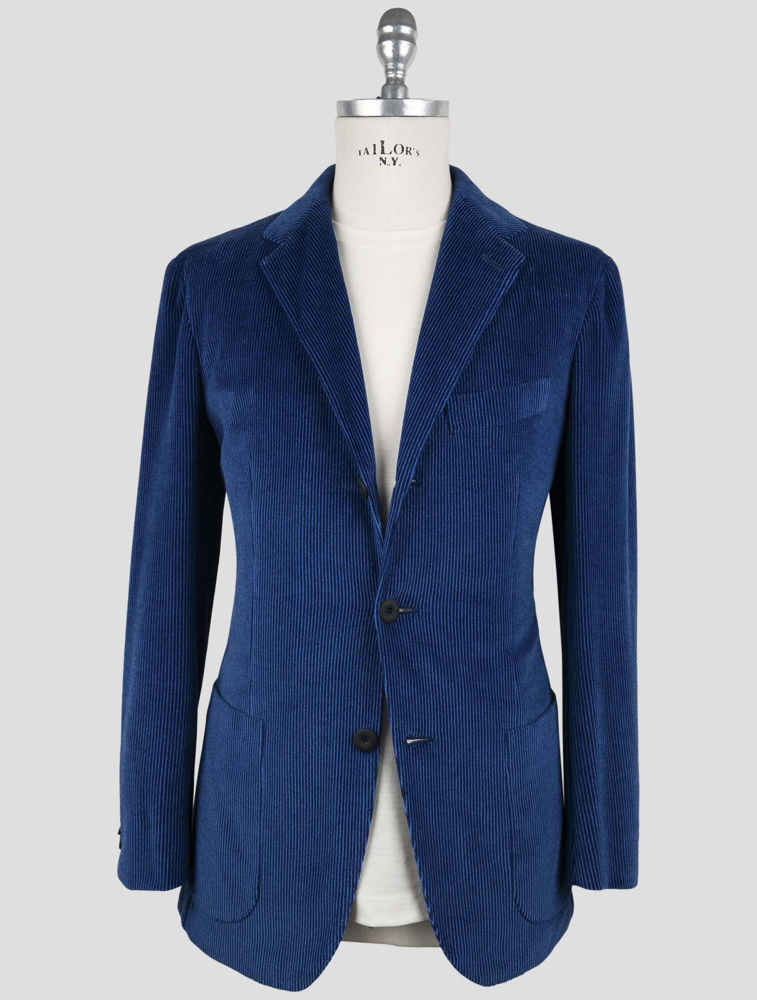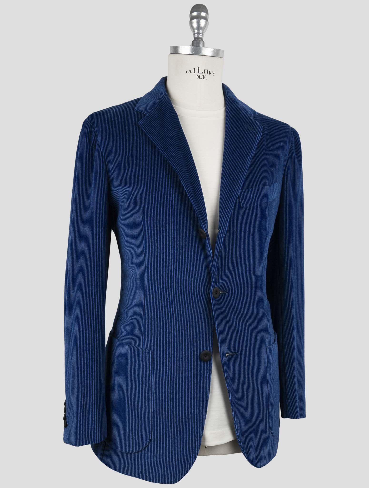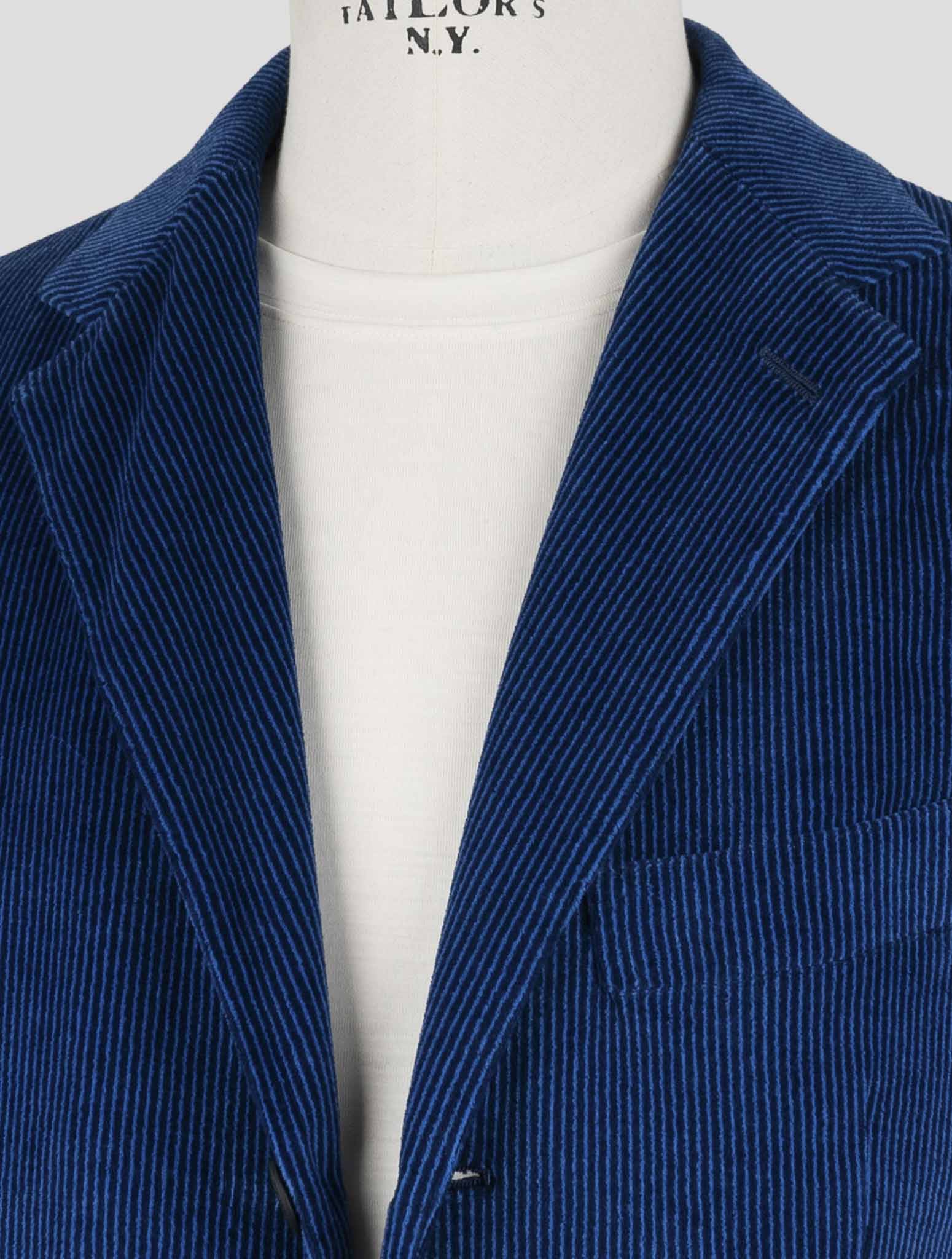 Kiton KNT Синий Полосатый Хлопковый Бархатный Костюм с 3 Пуговицами - Итальянский