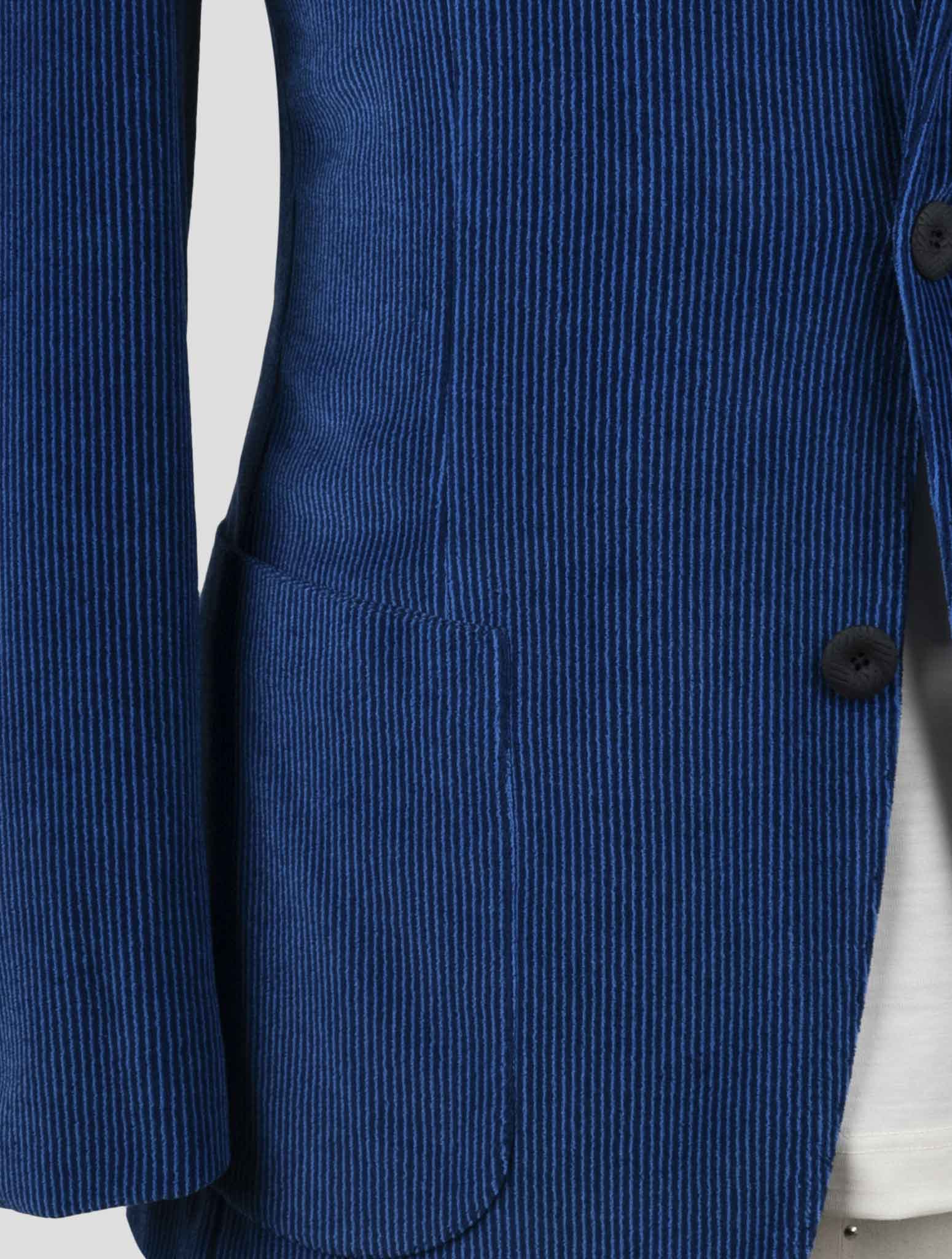 Костюм Kiton KNT из хлопкового бархата в синюю полоску Костюм Kiton KNT из бархата в синюю полоску сочетает в себе итальянское мастерство и современный дизайн. Это уникальное изделие выполнено из изысканной смеси хлопка и полиэстера (56 % хлопка, 44 % полиэстера), что обеспечивает комфорт и долговечность. Костюм имеет классическую застежку на три пуговицы в современном исполнении благодаря мягкой бархатной текстуре и узору в синюю полоску. Конструкция с полуподкладкой обеспечивает структуру, сохраняя при этом воздухопроницаемость, что делает ее