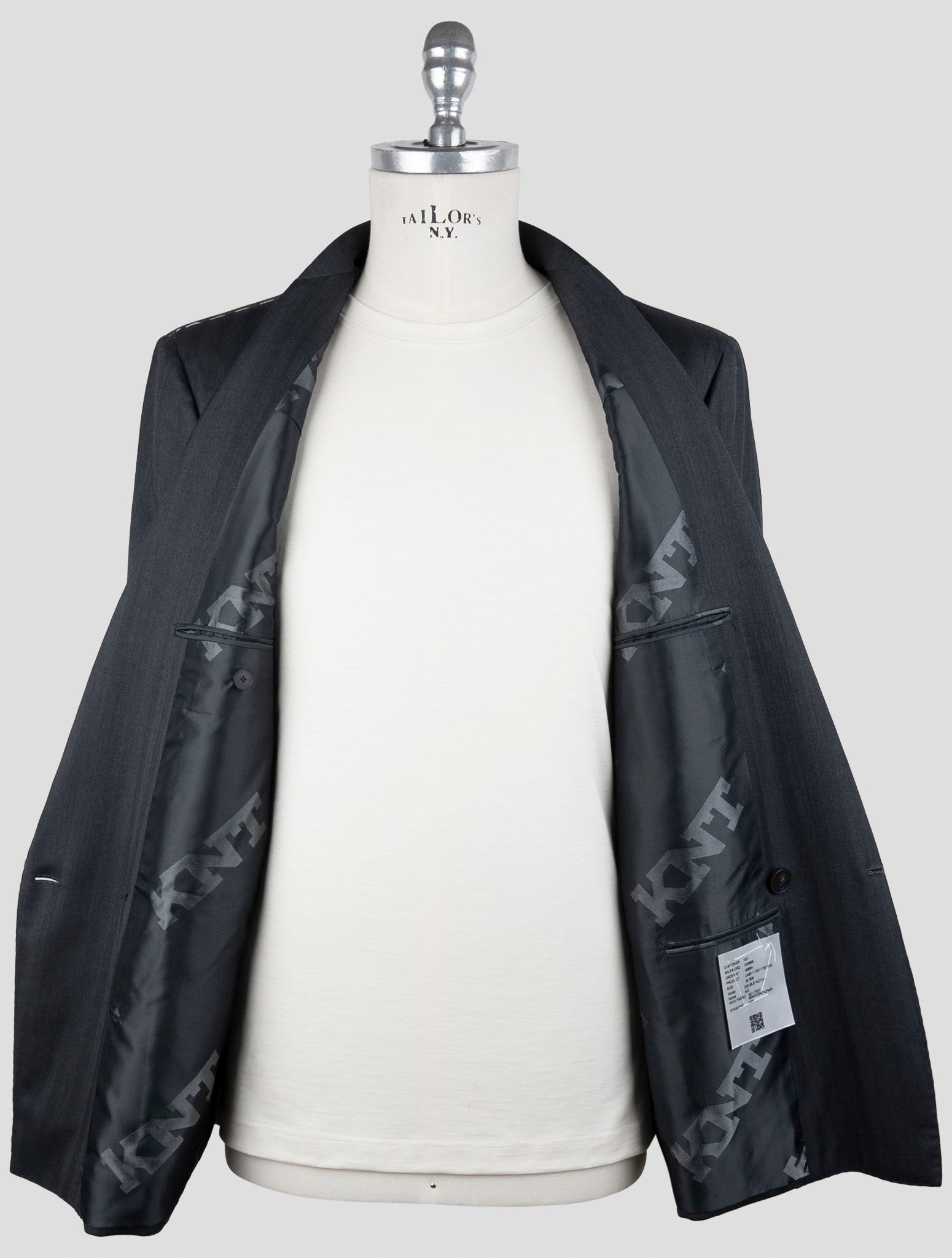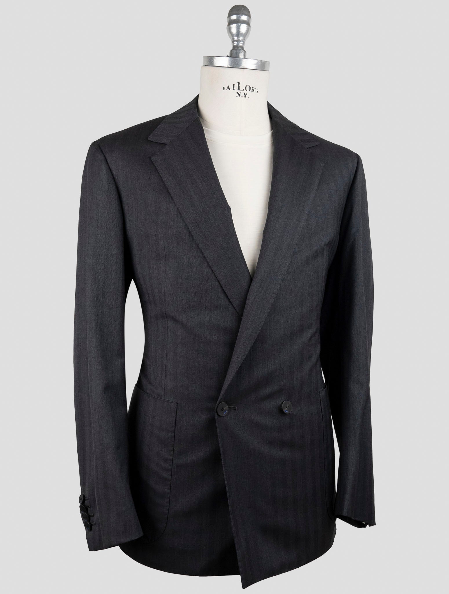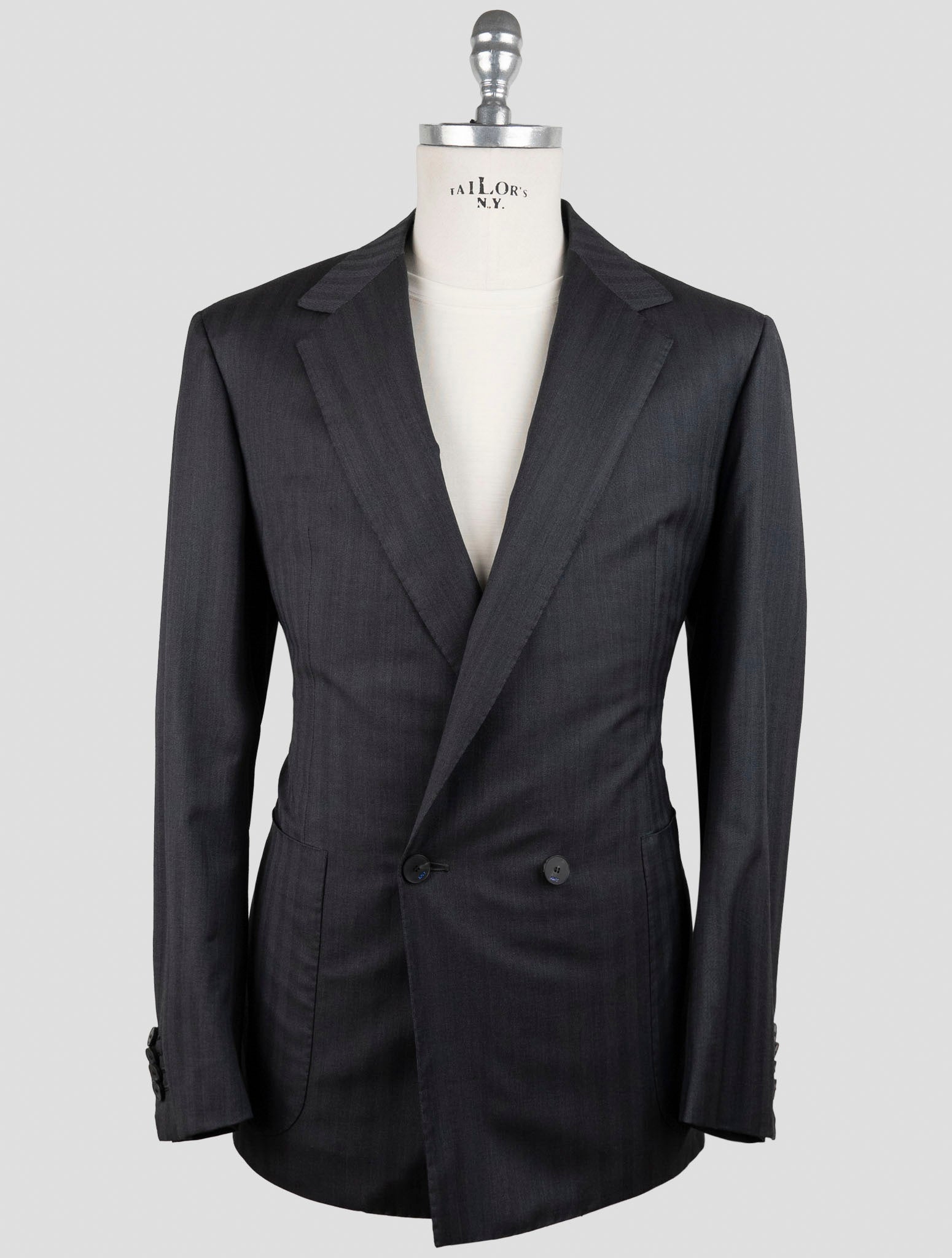 Kiton KNT Темно-серый двубортный костюм из натуральной шерсти - ручная работа