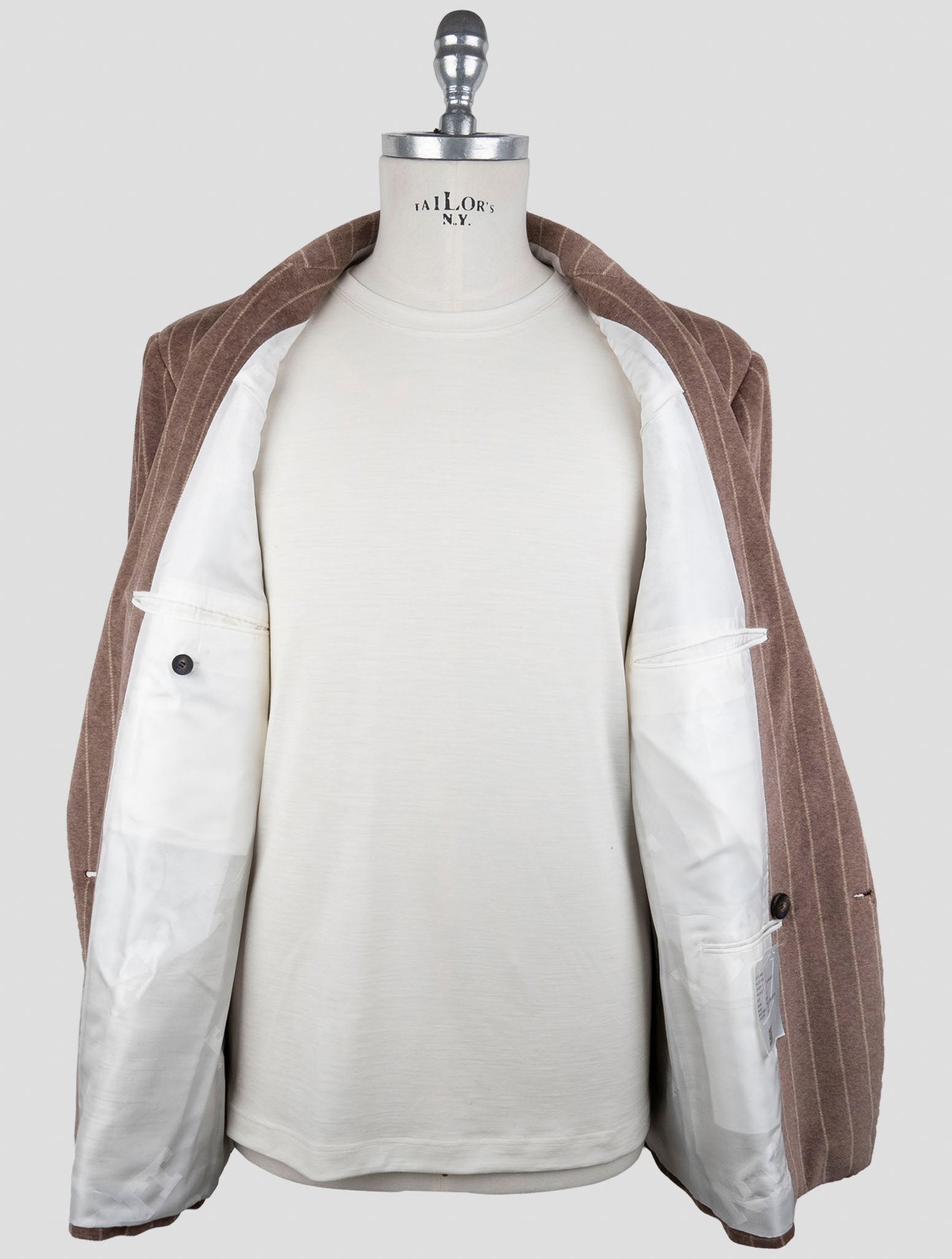 Kiton KNT Коричневый хлопковый бархатный двубортный костюм Костюм Kiton KNT из коричневого бархата представляет собой вершину итальянского мастерства, сочетающего роскошные материалы с безупречным пошивом. Этот дизайнерский мужской костюм изготовлен из богатой смеси 56% хлопка и 44% полиэстера, создающей мягкую бархатную текстуру, которая добавляет глубину и изысканность любому деловому гардеробу. Этот двубортный костюм, входящий в инновационную коллекцию KNT (Kiton New Texters), сочетает в себе классическую неаполитанскую технику пошива.