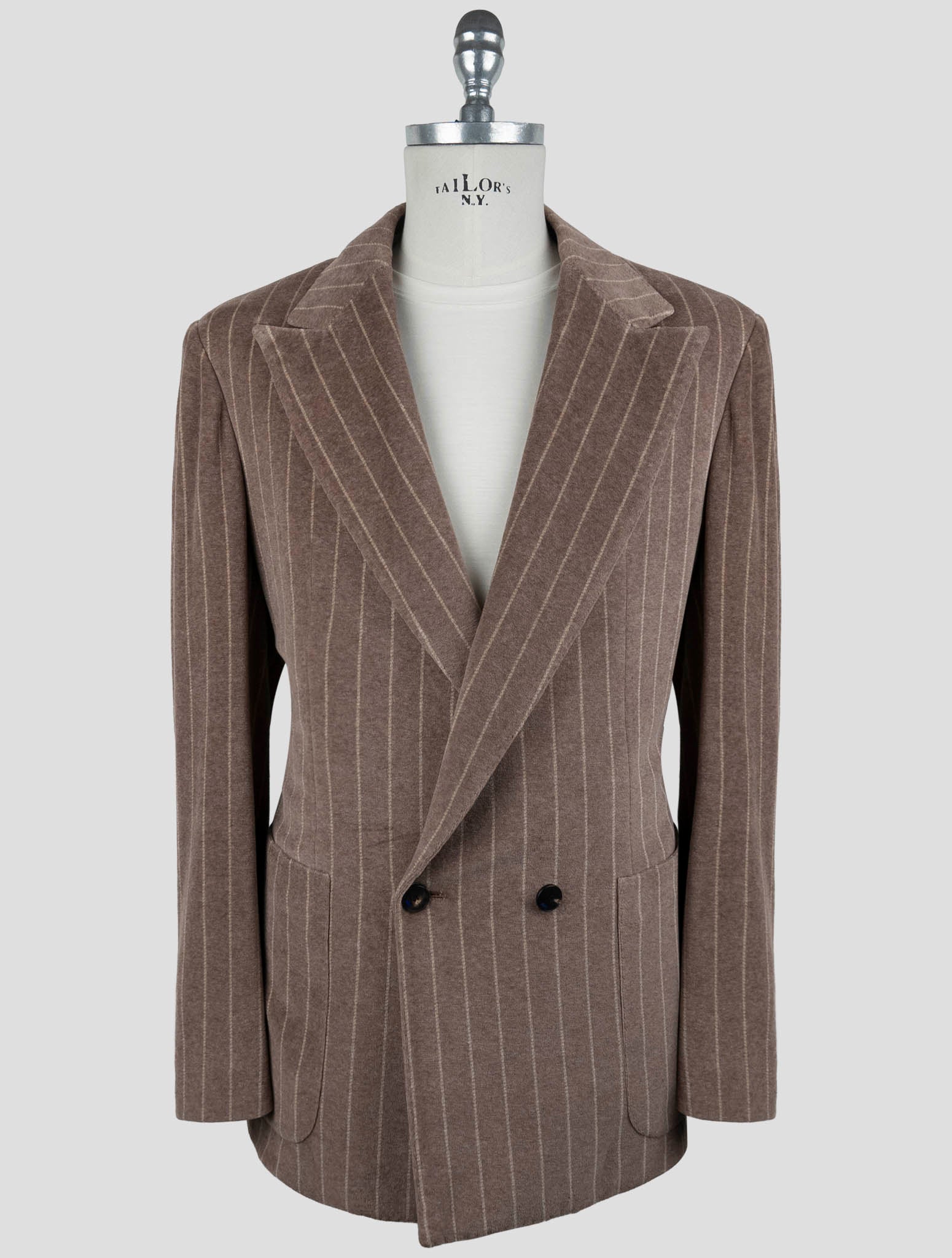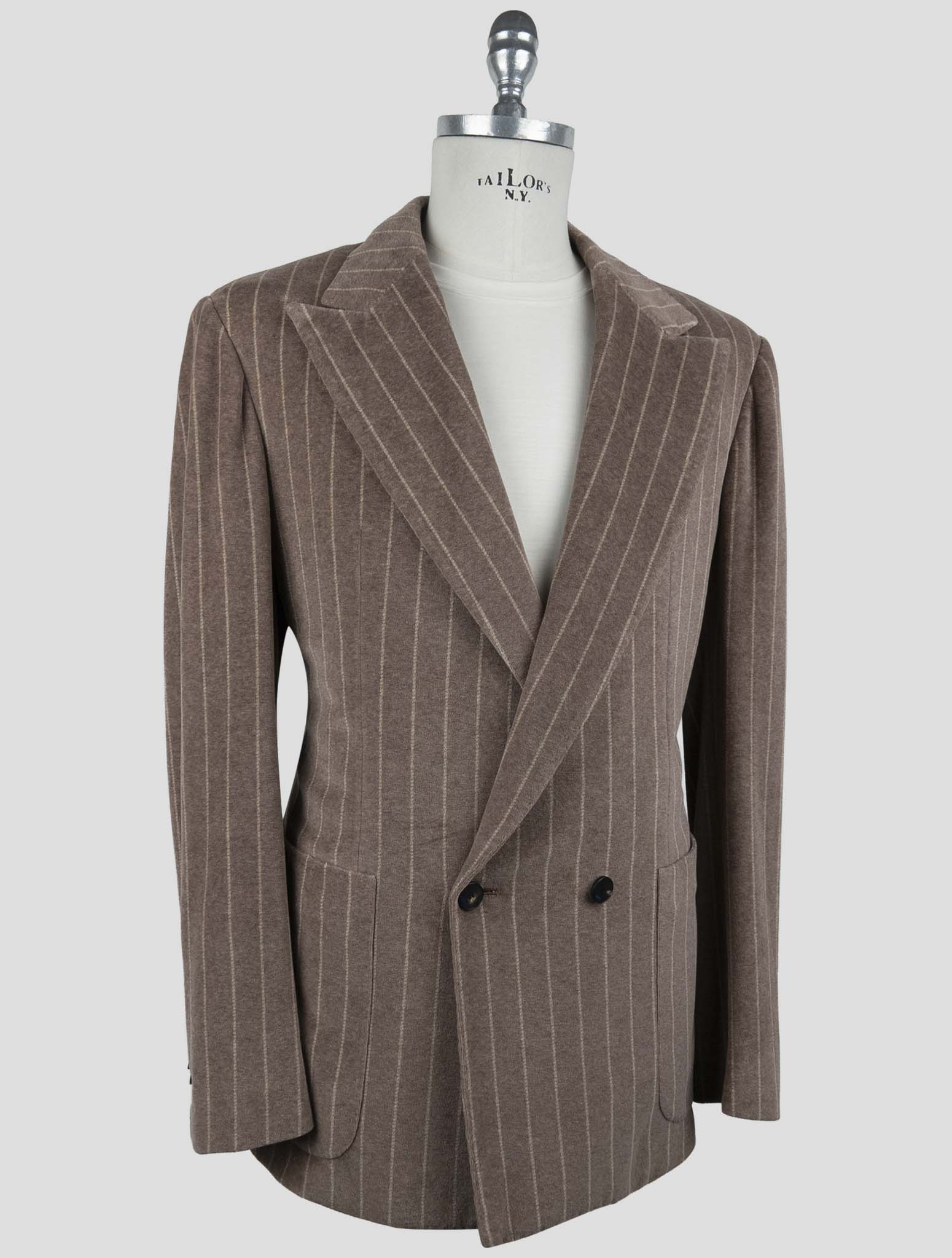 Kiton KNT Коричневый бархатный двубортный костюм из хлопка - итальянский