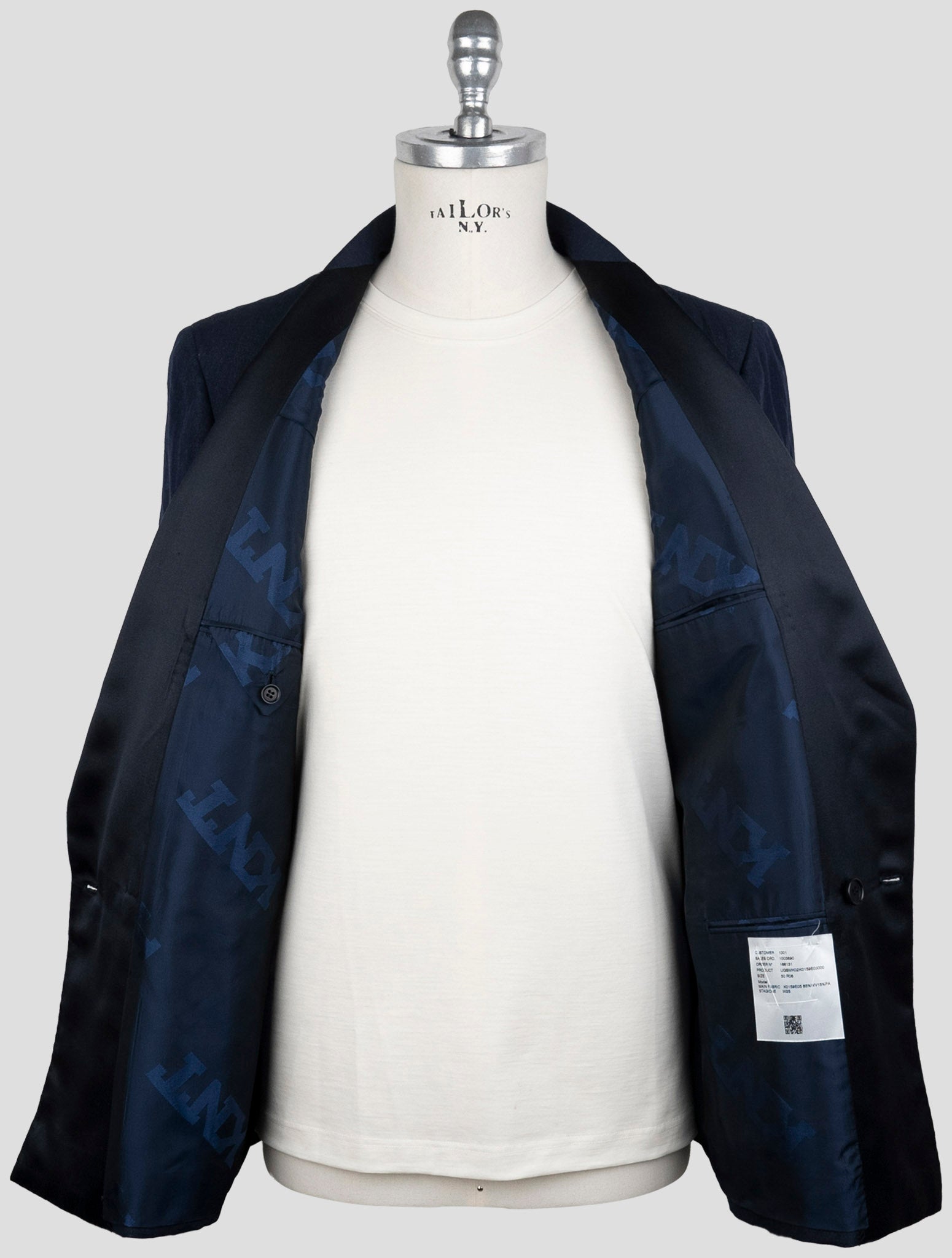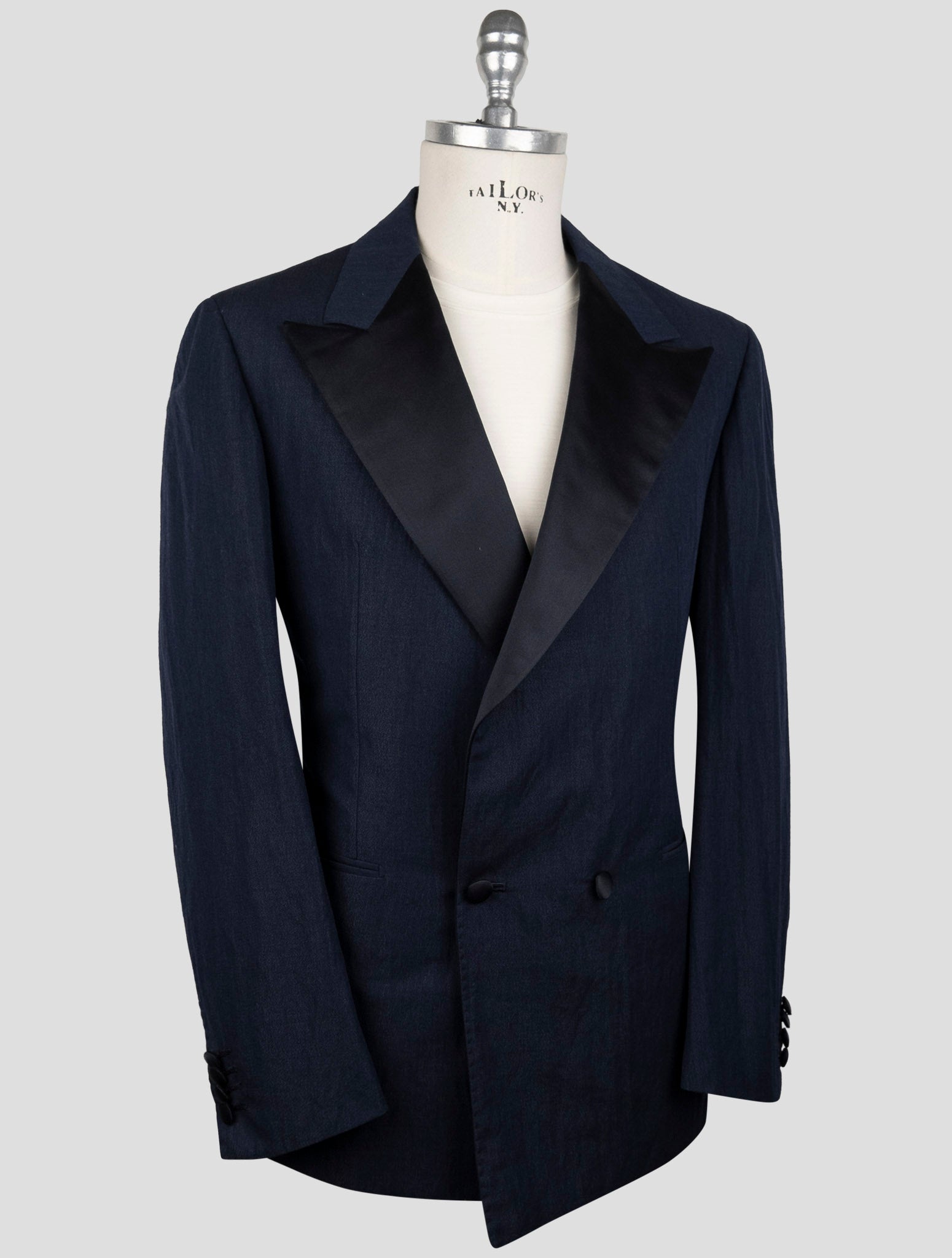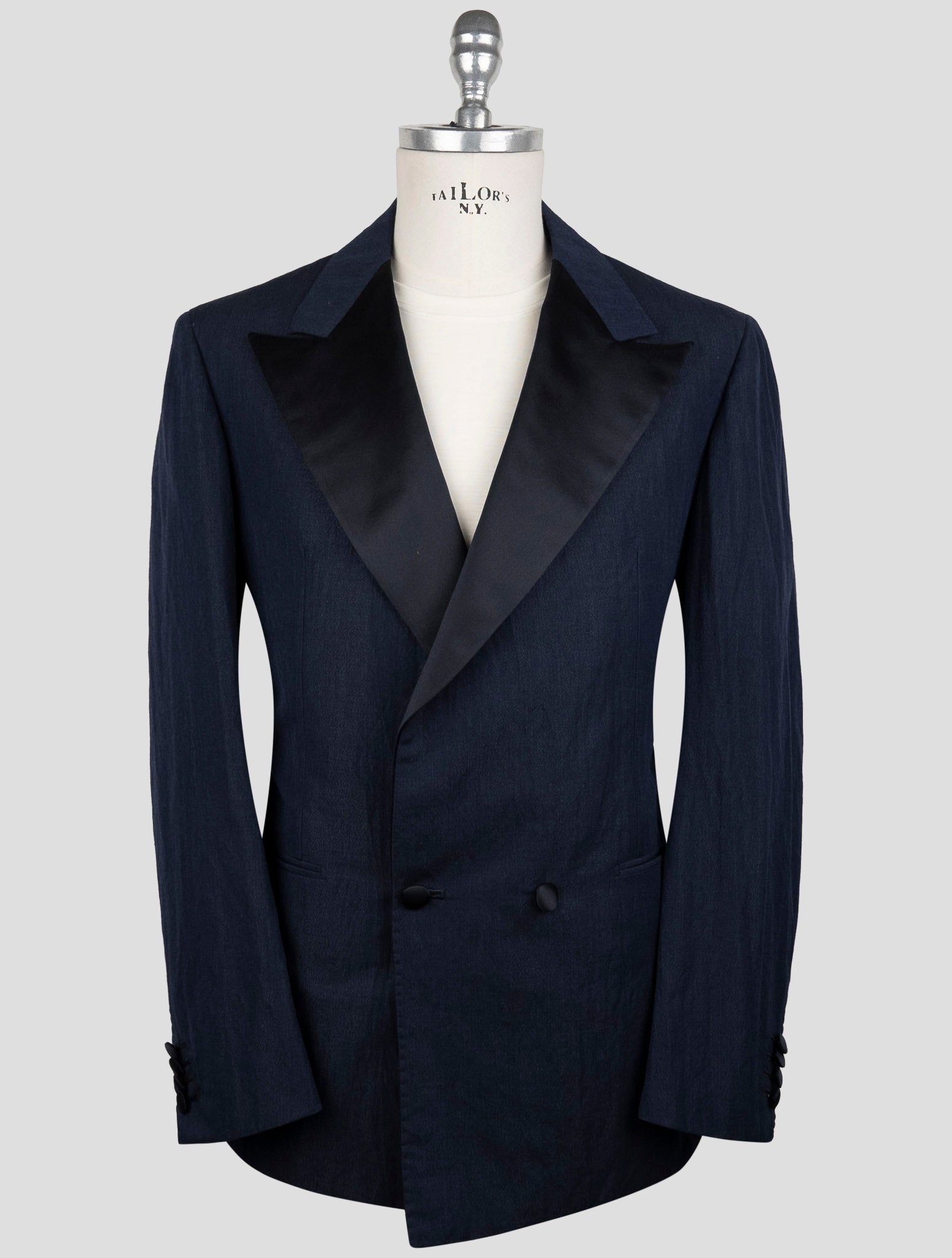 Kiton KNT Двубортный смокинг из натуральной шерсти синего цвета для курящих