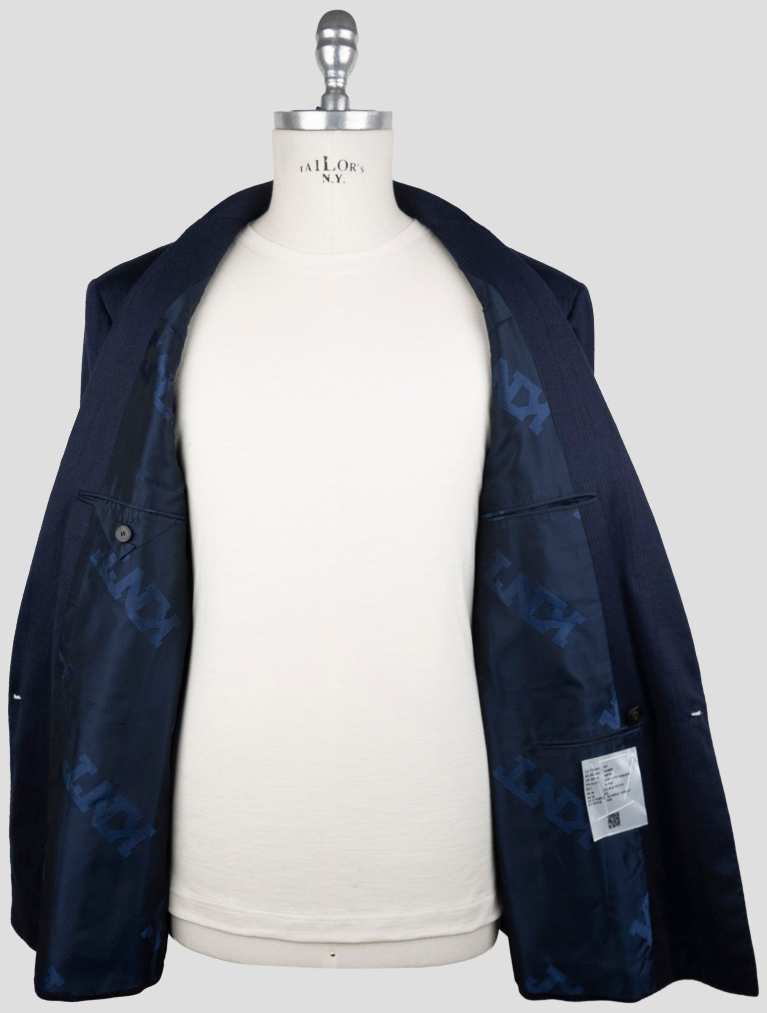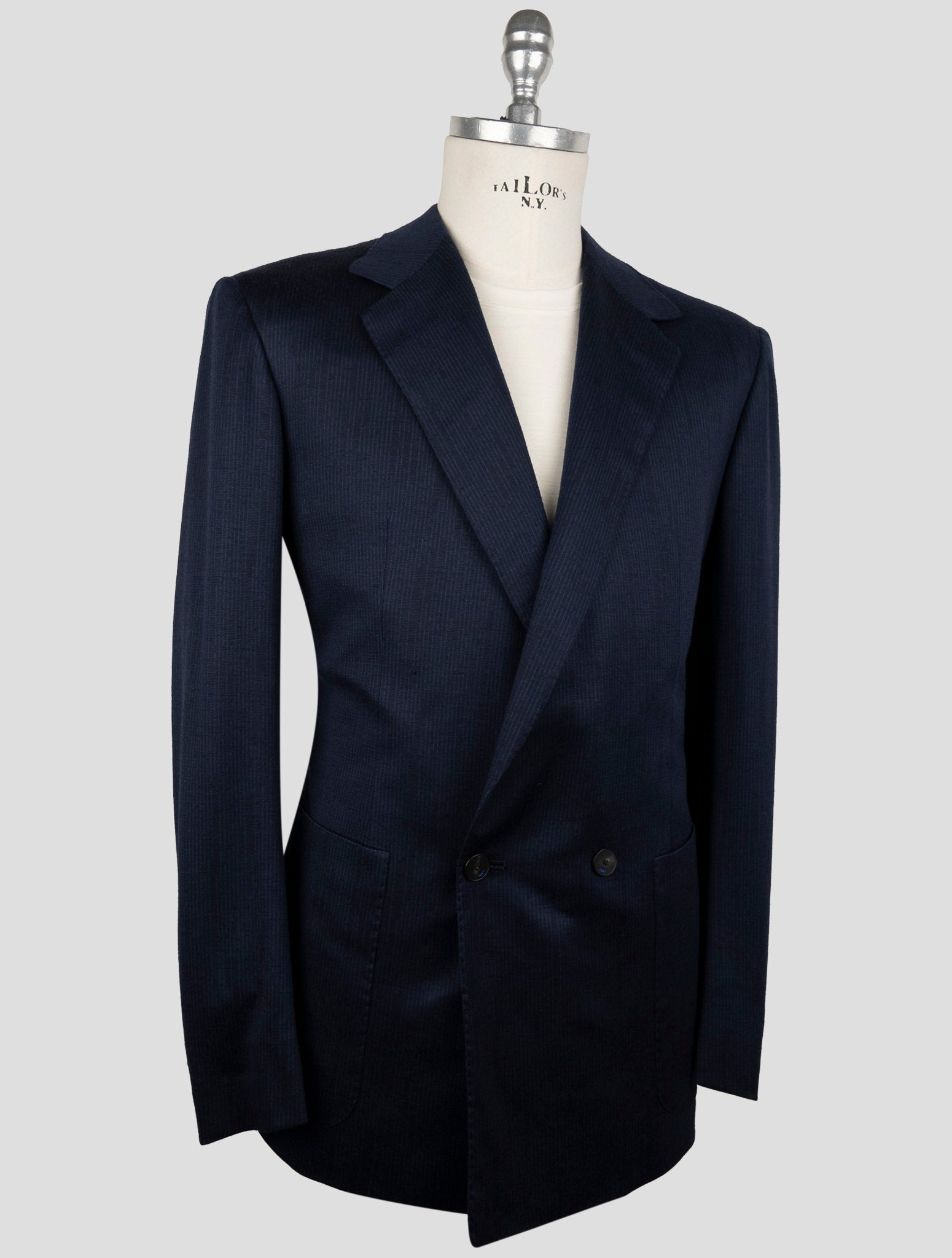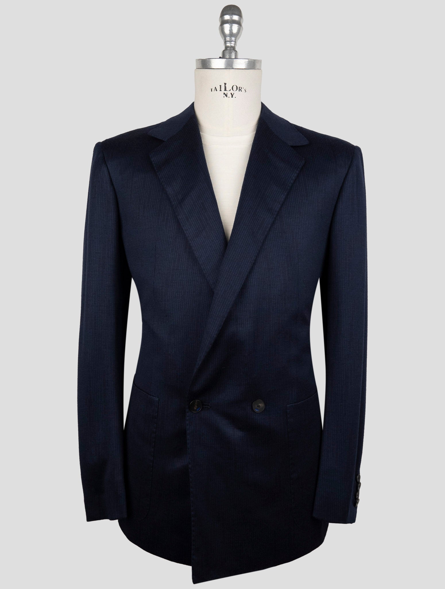 Kiton KNT Шерстяной двубортный костюм в синюю полоску - итальянская ручная работа