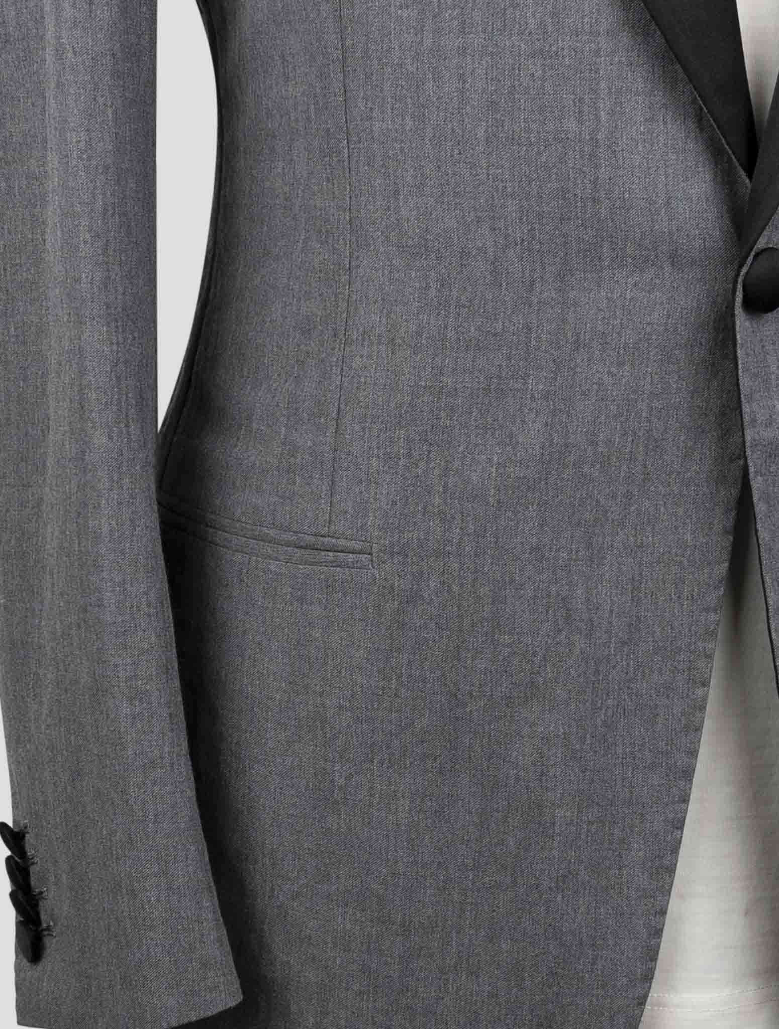 Серый костюм для курения Kiton KNT из натуральной шерсти Этот элегантный и современный костюм для курения Kiton KNT состоит из изысканного смокинга с одной пуговицей в сочетании с гладкими серыми брюками, искусно изготовленными в Италии из высококачественной смеси натуральной шерсти и полиамида (PA). Этот роскошный мужской смокинг создает современный, легкий вид, отличается повышенной прочностью и эластичностью, обеспечивая максимальный комфорт. Застежка на одну пуговицу, атласные лацканы и точный крой создают чистый, утонченный силуэт, идеально подходящий для торжественных мероприятий и для вечеринок.