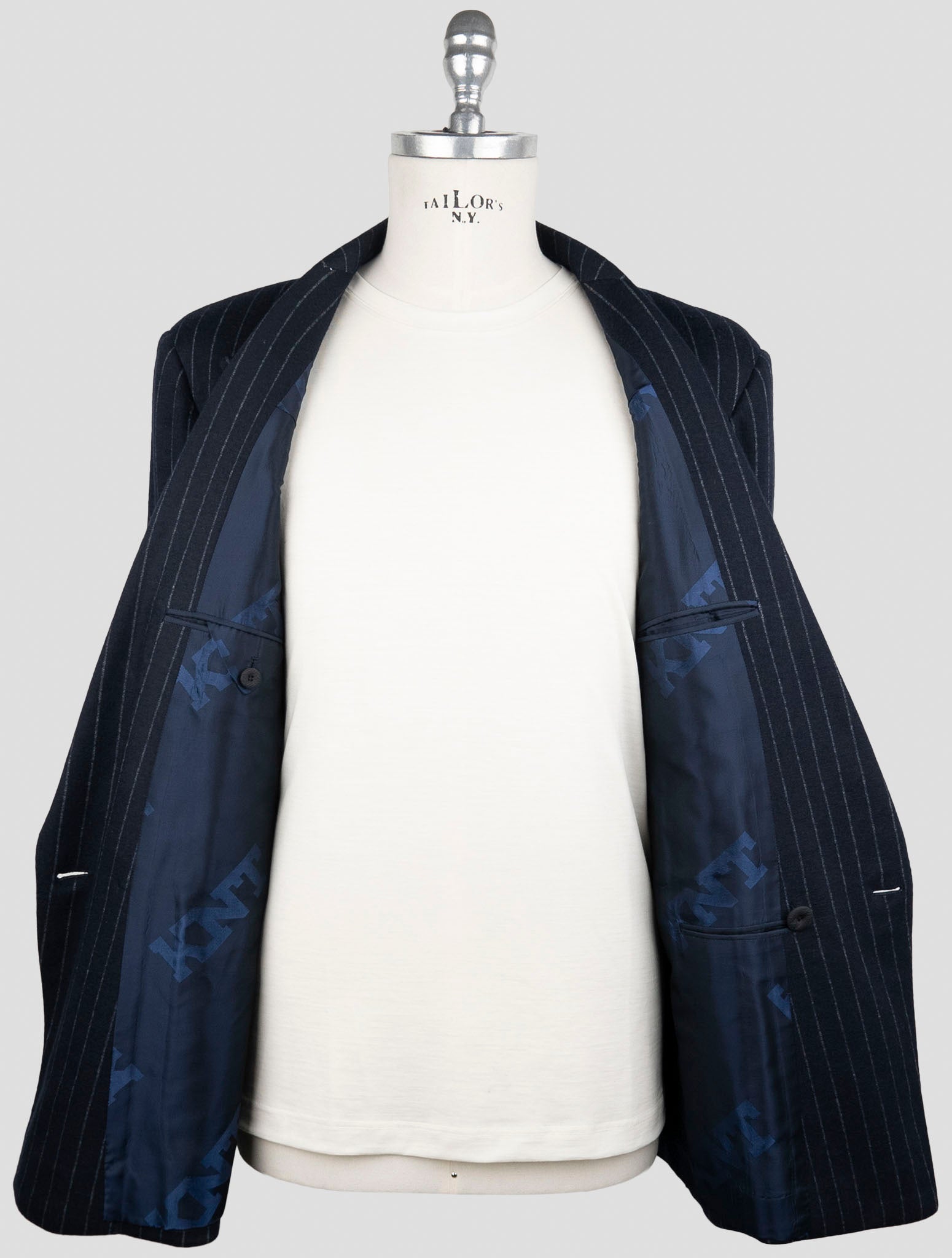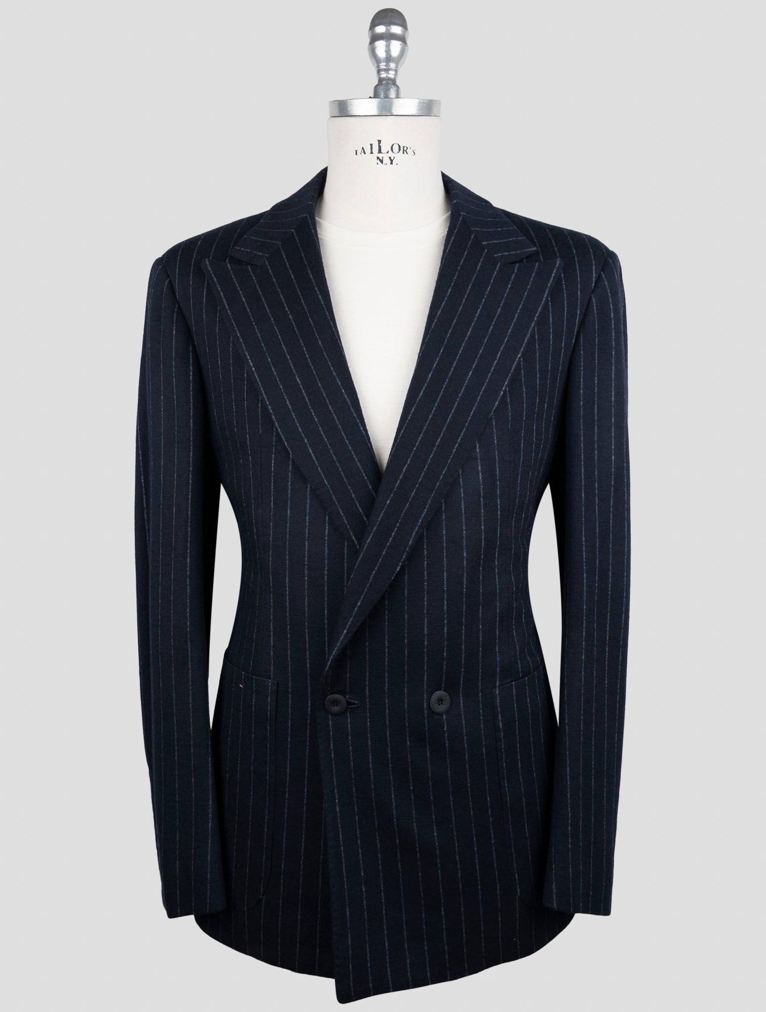 Kiton KNT Двубортный костюм из натуральной шерсти и хлопка в синюю полоску