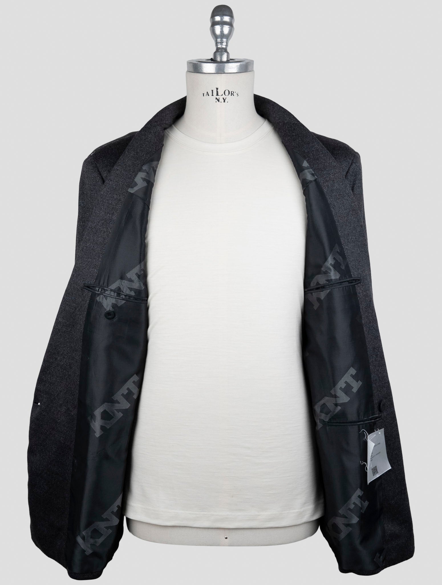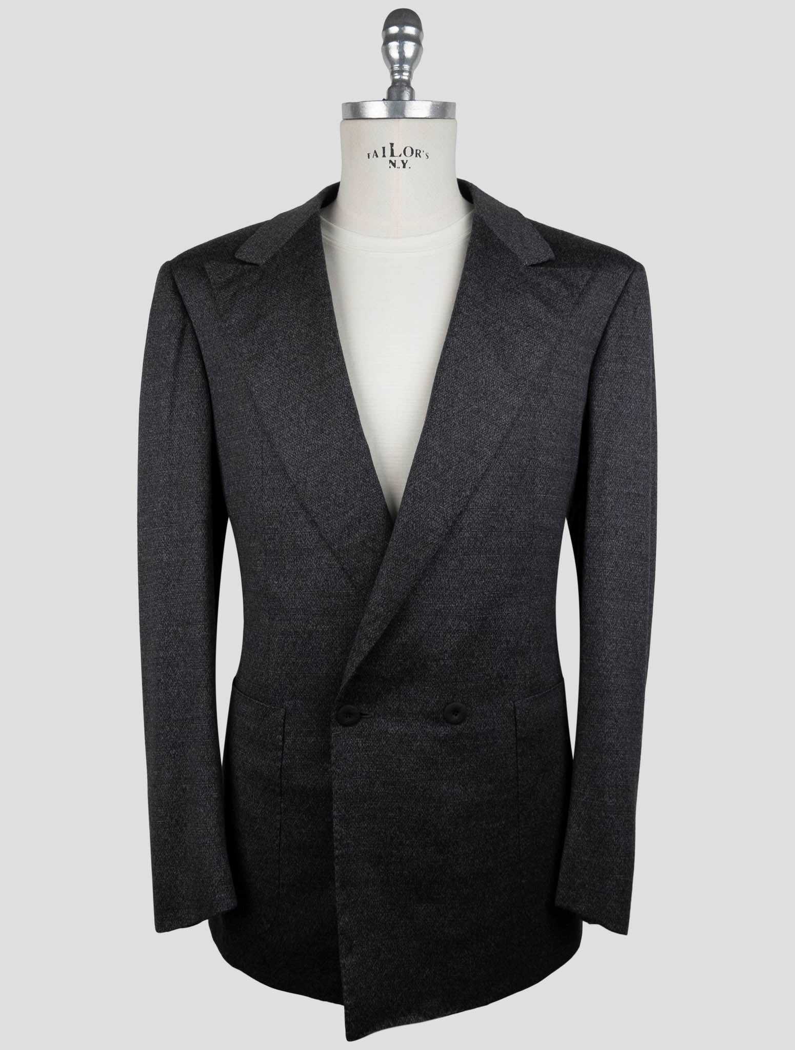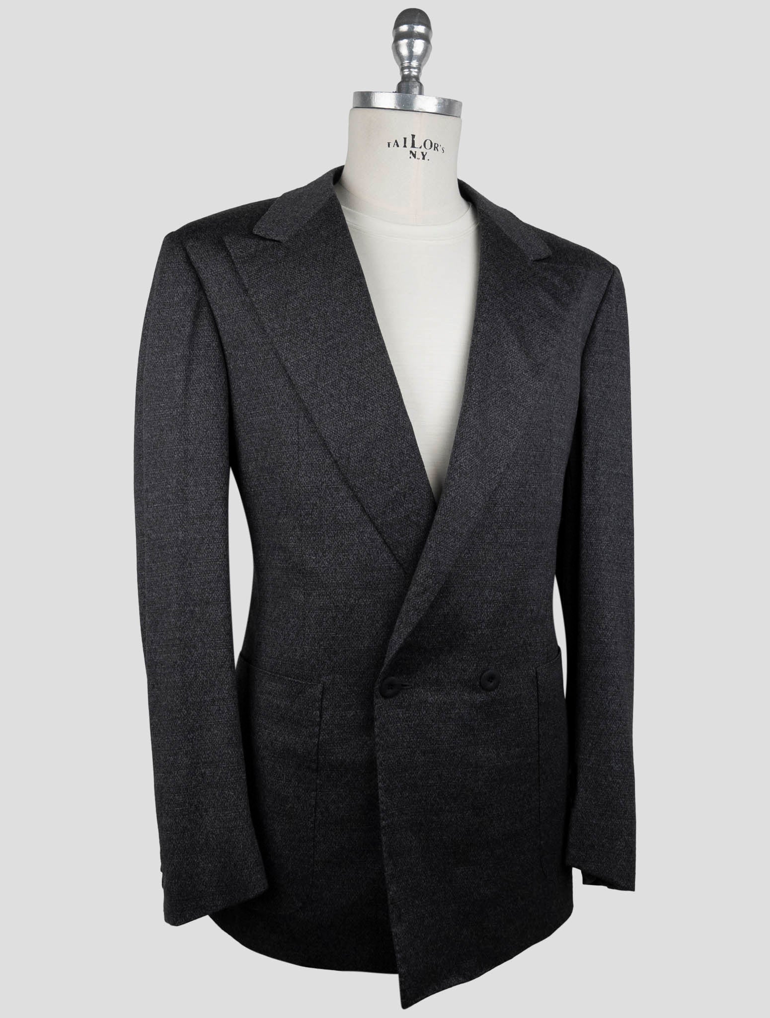 Серый шерстяной двубортный костюм Kiton KNT – итальянский пошив премиум-класса Серый шерстяной костюм Kiton KNT представляет собой изысканное итальянское мастерство для взыскательного джентльмена. В этом двубортном костюме традиционные неаполитанские методы пошива сочетаются с элементами современного дизайна из инновационной коллекции KNT (Kiton New Texters). Этот роскошный мужской костюм, полностью изготовленный в Италии из 100% шерсти премиум-класса, обеспечивает исключительную мягкость, естественную воздухопроницаемость и структурированную, но удобную одежду.