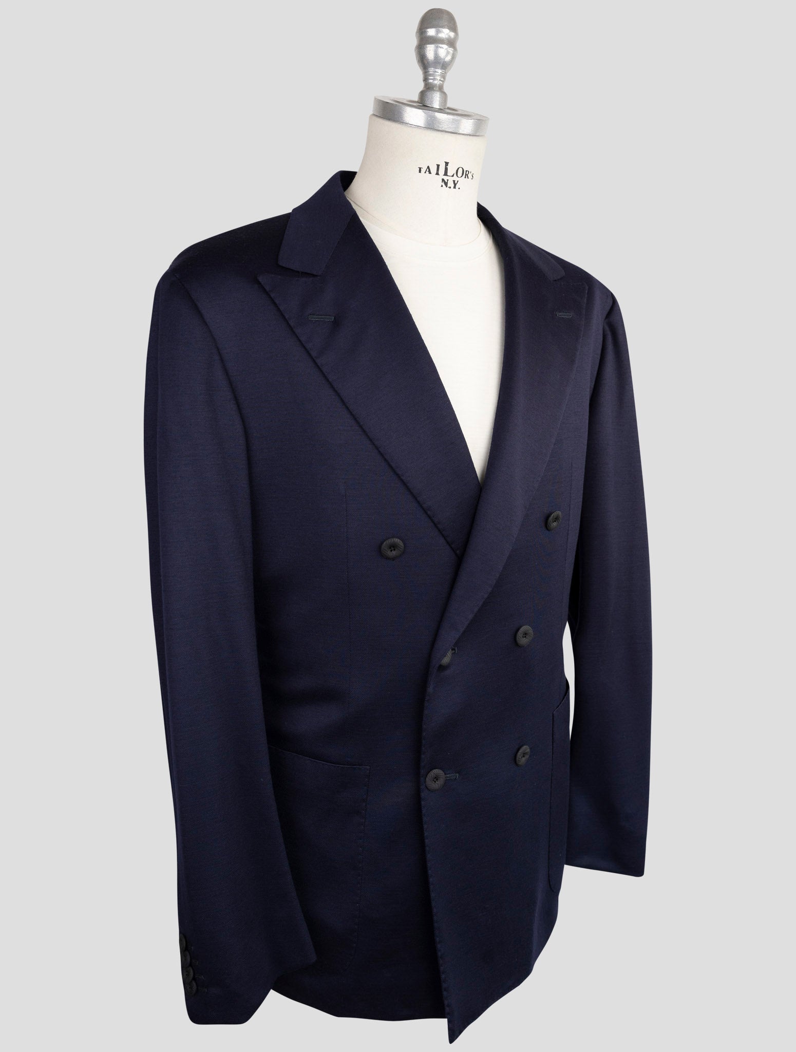 Kiton KNT Синий шерстяной двубортный костюм - Неаполитанский ручной работы